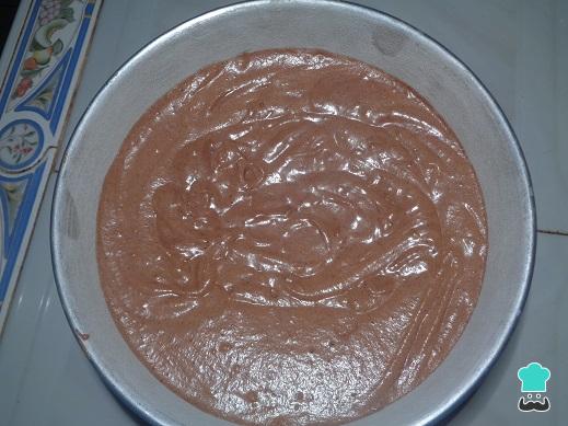 Una vez listo el molde, añadimos la mezcla y cocinamos el bizcocho de chocolate en el horno a 180°C por unos 35 minutos.