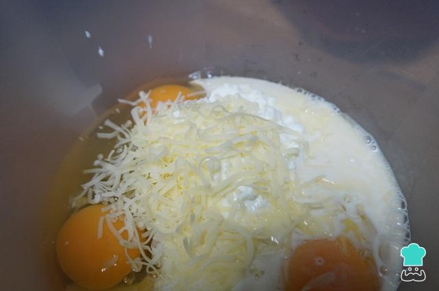 Ponemos queso rallado, sal y pimienta, y seguimos mezclando. La cantidad del queso a vuestro gusto.