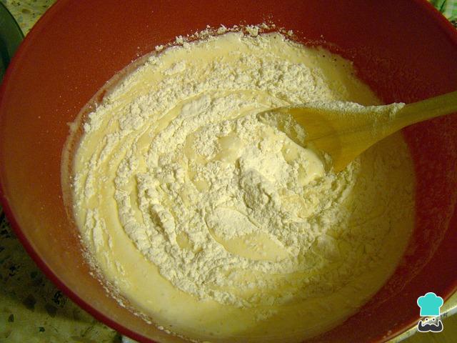 Reserva el puré para más adelante y coge otro recipiente. Añade la mantequilla y bátela hasta hacerla crema. Luego, incorpora la harina poco a poco y sin dejar de batir. Para que te sea más fácil mezclarla, tamiza la harina con los polvos de hornear antes de añadirla.