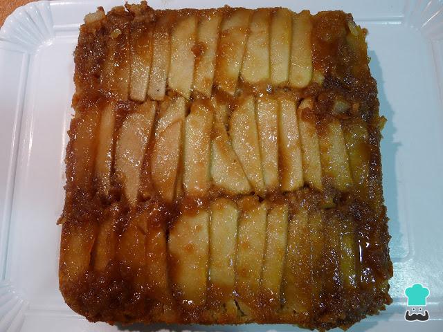 Te aconsejamos que pongas a calentar una taza de azúcar y 50 gramos de mantequilla hasta ambos ingredientes se fundan e integren. Luego, añade dos cucharadas de crema de leche y, cuando se disuelva, añade varias rodajas de manzanas y deja que se cocinen durante un minuto. Pasado el tiempo, colócalas sobre el pastel ya horneado y frío, deja que se entibie y ¡listo!