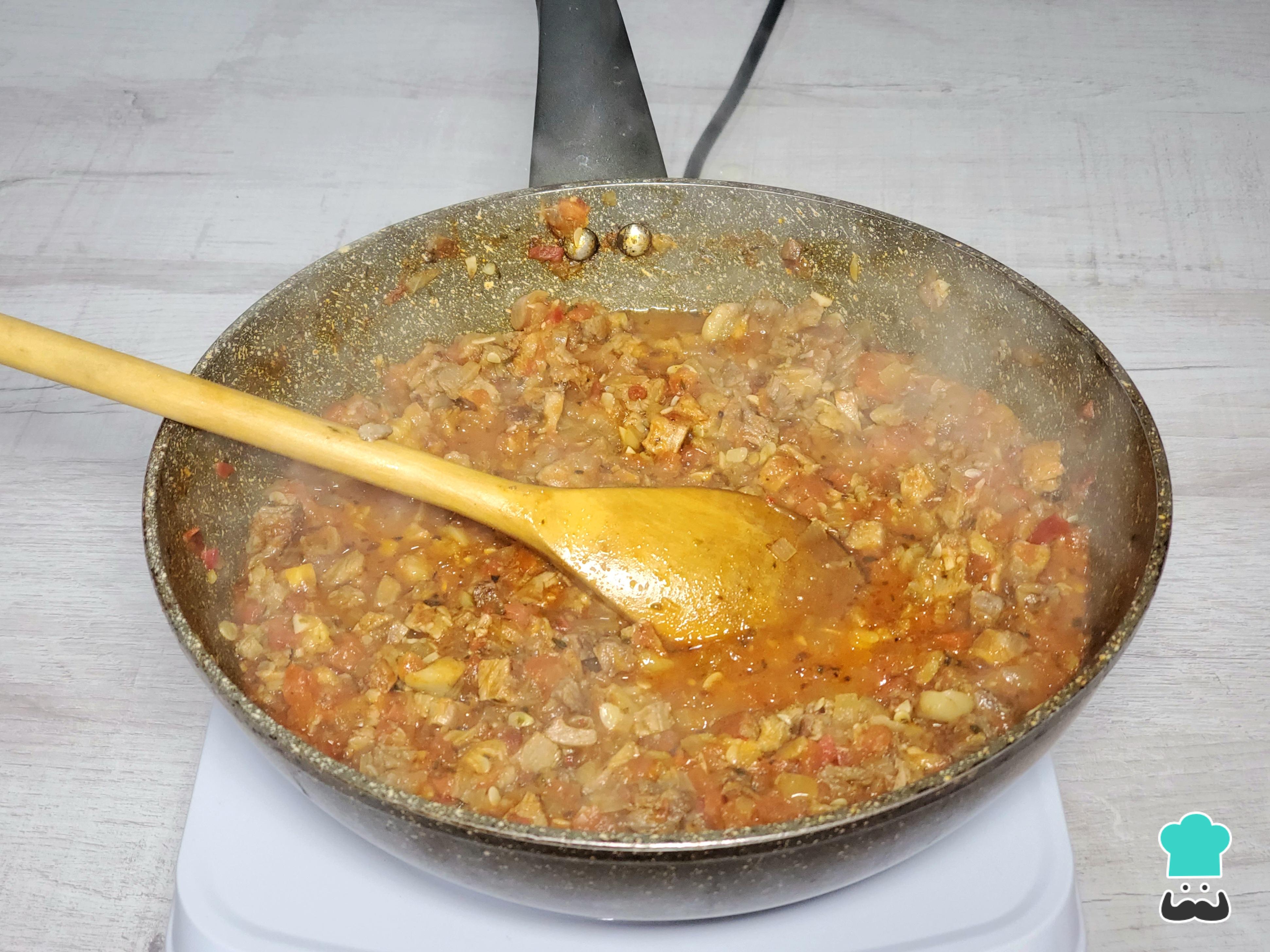Incorpora la carne, que puede ser picada o molida según prefieras, y cocina por unos minutos más.