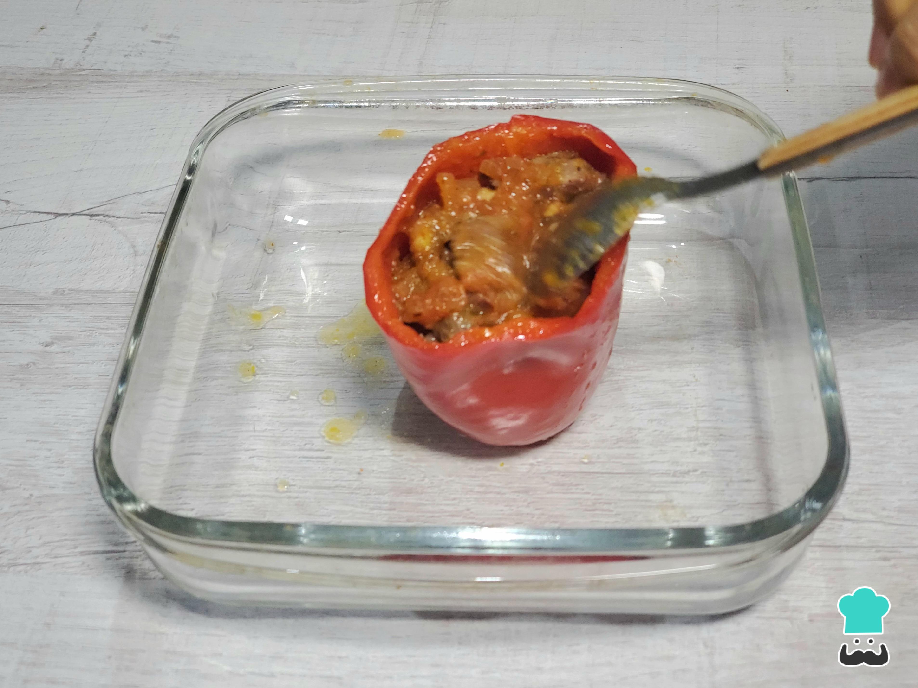 Rellena los rocotos con la mezcla de carne y cubre con una tajada de queso.