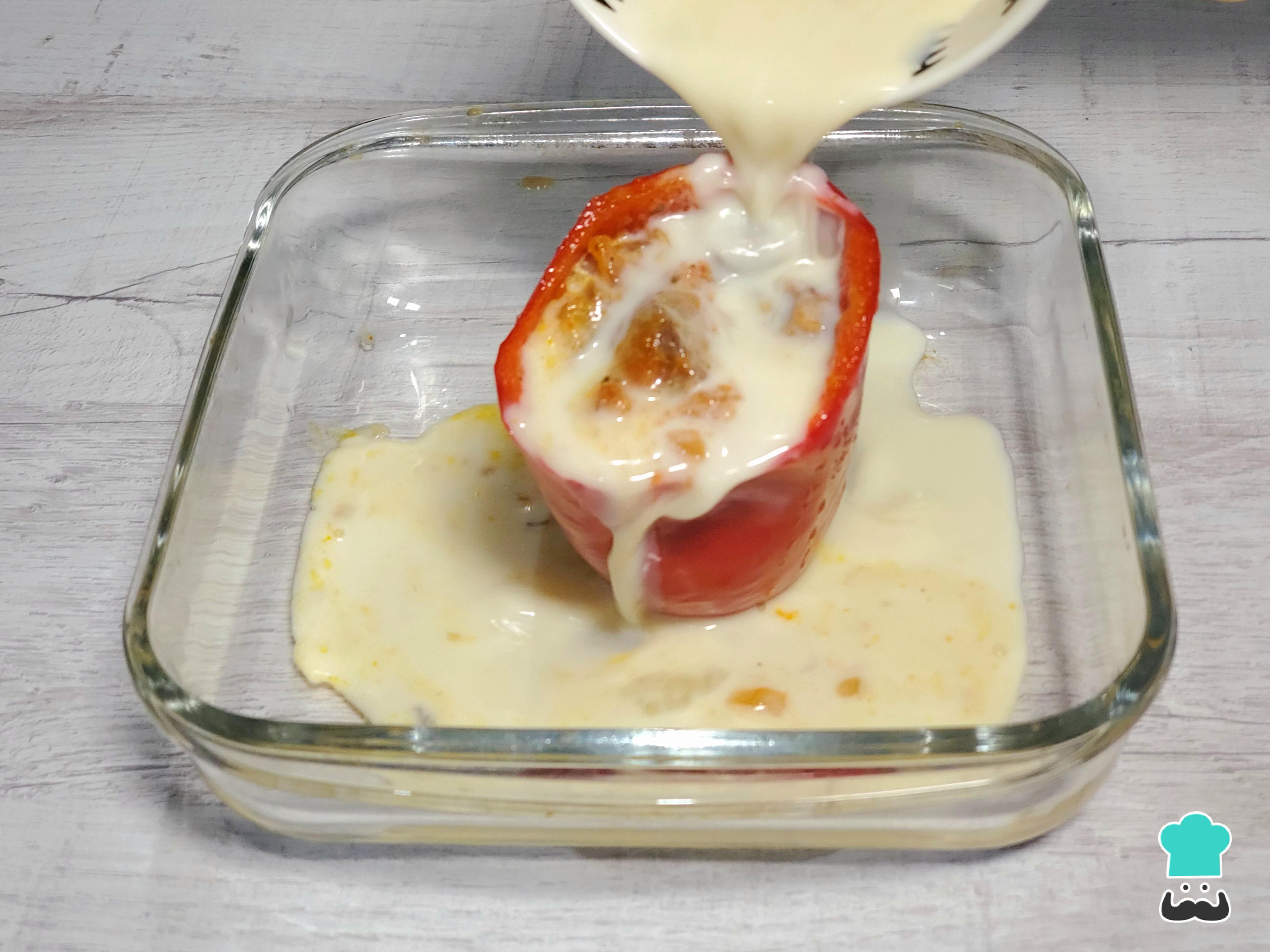 Coloca los rocotos en una bandeja profunda y vierte la leche con huevo que sobró del pastel de papa peruano. Hornea por unos 15 minutos o hasta que el queso gratine bien.