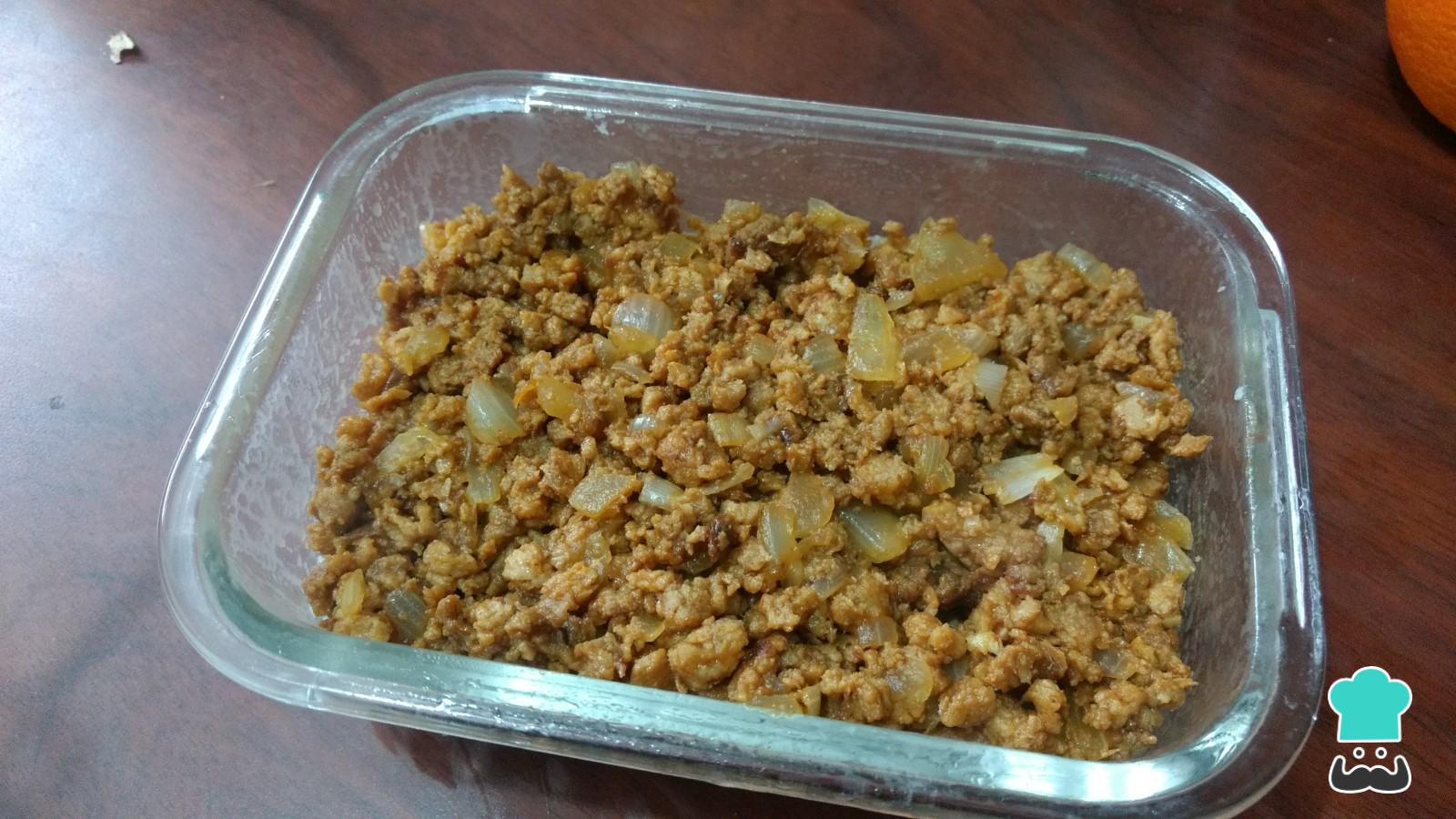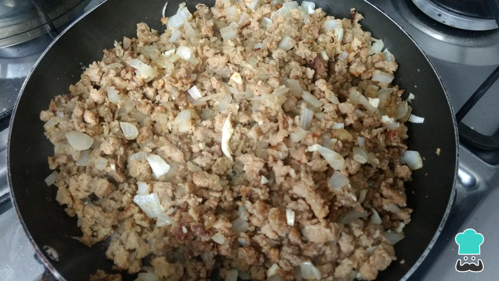 Agrega la carne y los condimentos y sofríe por 15 minutos a fuego medio.
