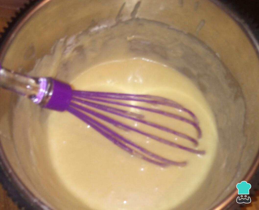 Bate los huevos junto con la pizca de sal y el azúcar hasta que queden esponjosos. Después agrega poco a poco la mantequilla derretida y templada y la leche, y luego añade la harina y la levadura tamizadas previamente hasta conseguir una masa ni muy liquida ni muy homogénea para el pastel de manzana y pera, y por último agrega el limón y mezcla bien.