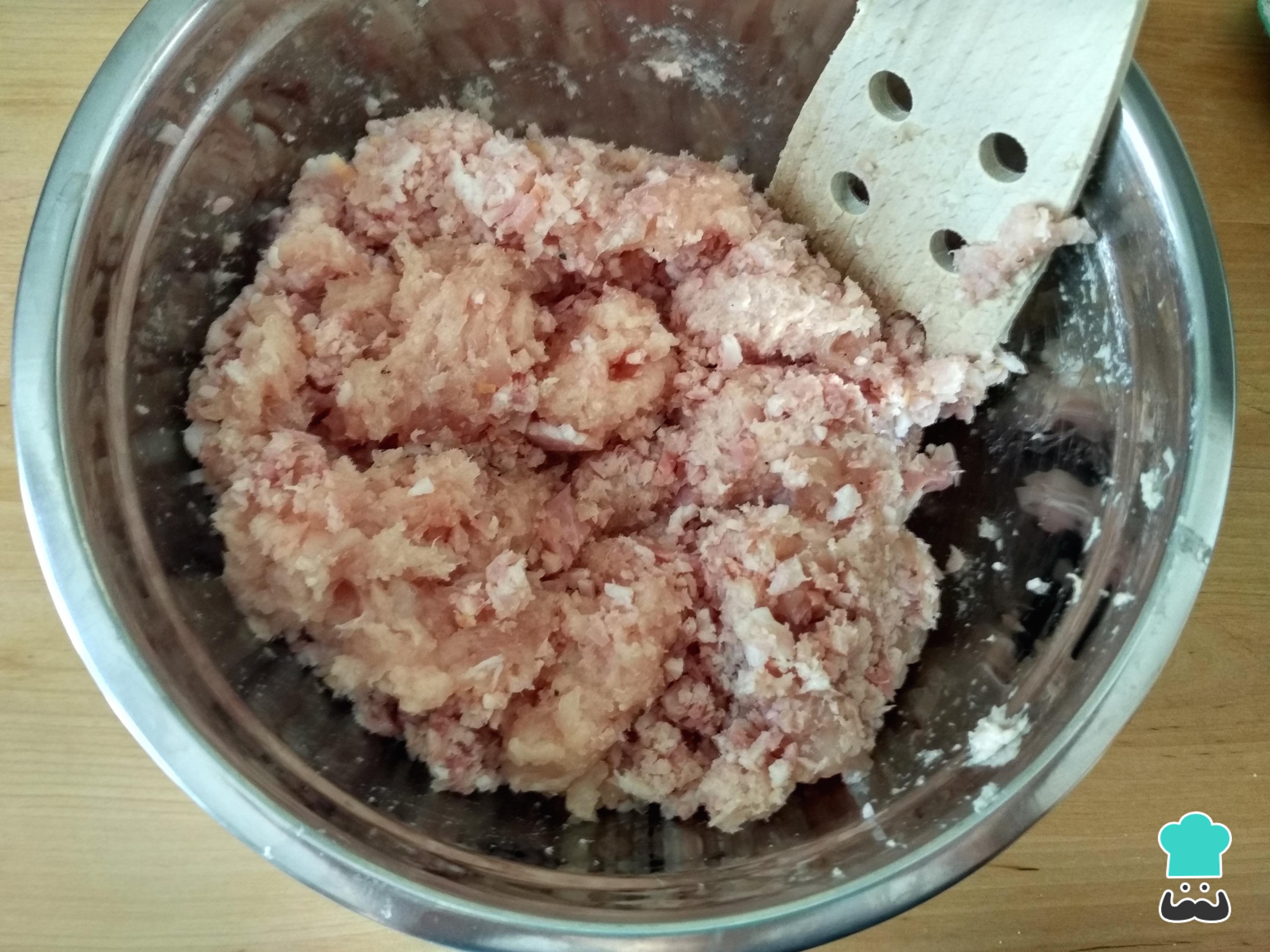 Picamos todos los ingredientes en una picadora hasta que la textura sea una masa compacta. Si no nos cabe todo a la vez, lo podemos procesar por partes o incluso por ingredientes, y luego mezclar todo manualmente.