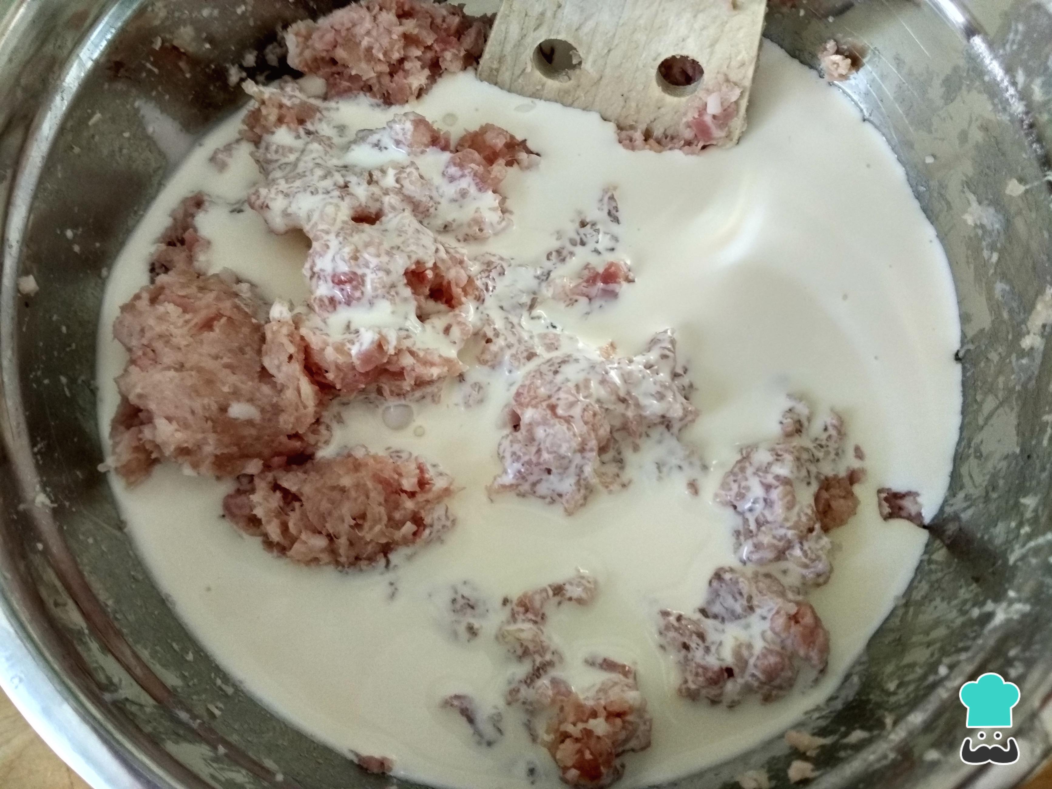 Añadimos la nata o crema de leche al bol y mezclamos bien para que la masa se integre y los sabores se mezclen.