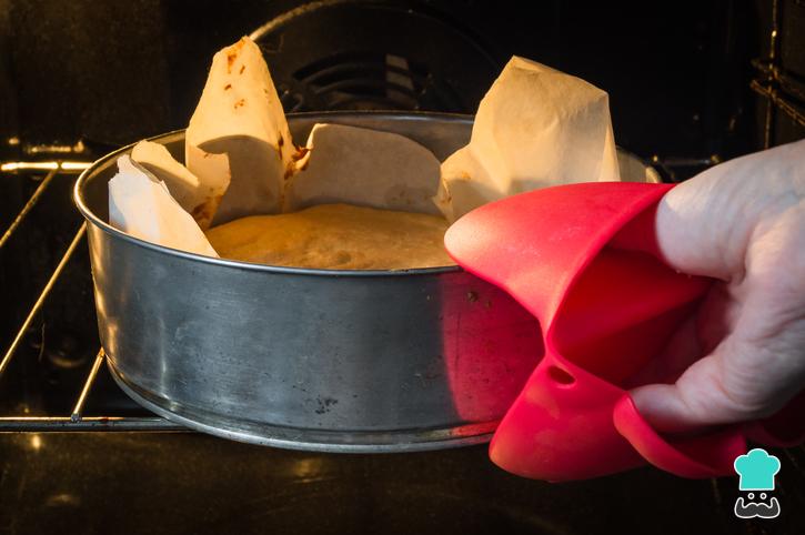 Horneamos el bizcocho del pastel de tres leches de 30 a 45 minutos. Lo dejamos unos 45 minutos pero debes ir mirando si está listo. Clavamos un cuchillo o un palillo de madera y estará listo el bizcochuelo cuando salga limpio. Después, lo sacamos del horno y dejamos reposar a temperatura ambiente para que se entibie.