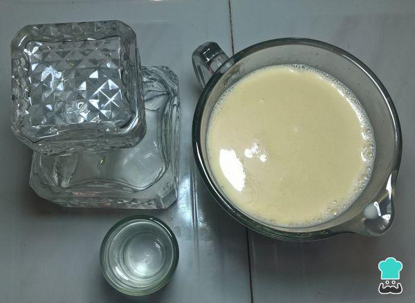Para hacer el baño, la cubierta o la crema tres leches (recibe varios nombres dependiendo del país proveniente) vamos a licuar las 2 leches (condensada, evaporada), el brandy, la media crema y la leche normal. Todo esto lo mezclaremos bien en una batidora.