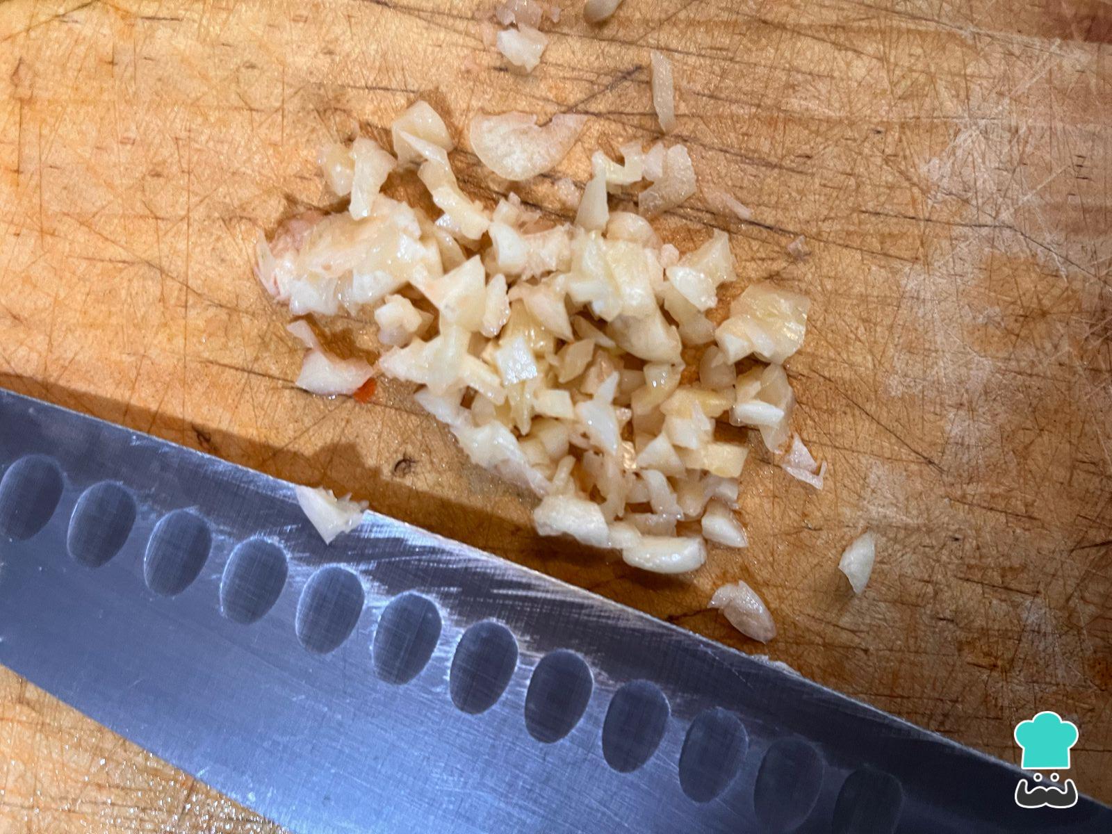 Corta el ajo finamente.