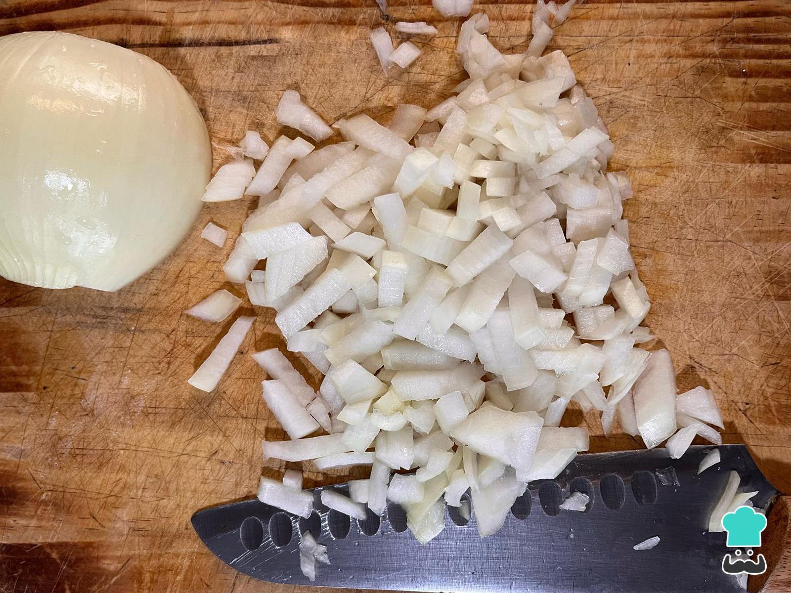 Corta la cebolla en cubos pequeños.
