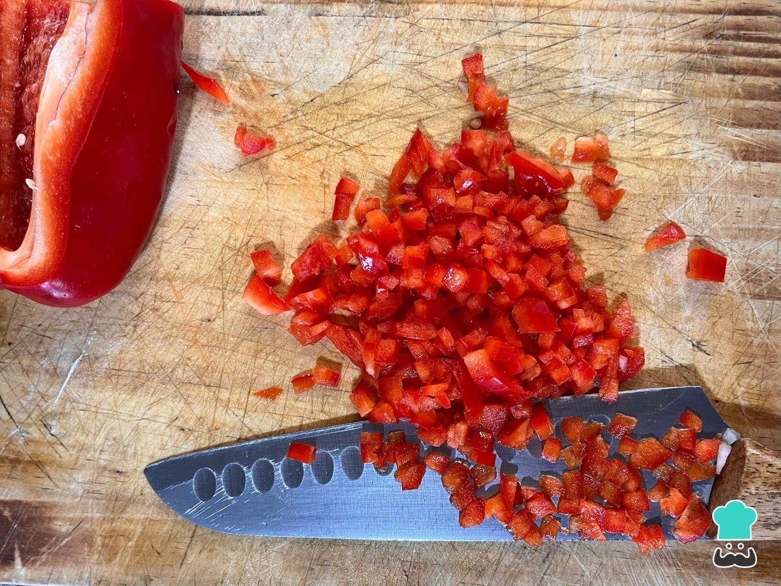 Corta el pimentón en cubos pequeños.
