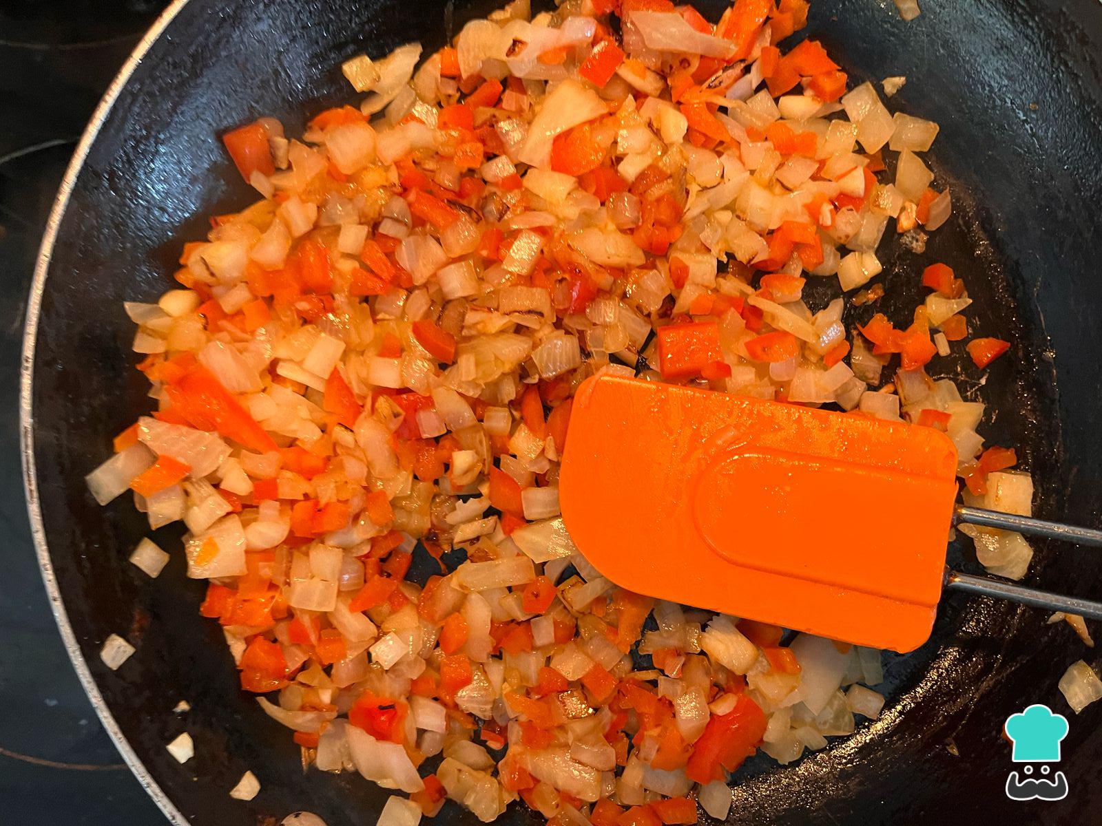 Añade el pimentón y cocina por unos minutos más hasta que estén dorados.