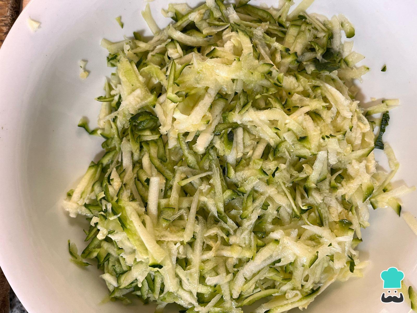 Lava bien los zapallos italianos y rállalos con todo y cáscara.