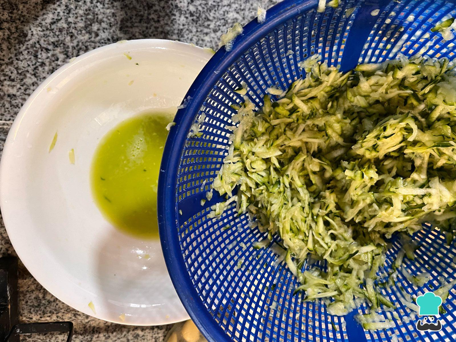 Colócalos en un colador con un poco de sal y deja reposar 10 minutos para eliminar el exceso de agua. Después, exprímelos bien apretando con la mano.