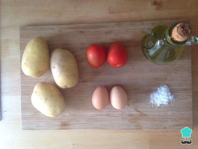 Reunimos todos los ingredientes para elaborar las patatas al horno con huevo.