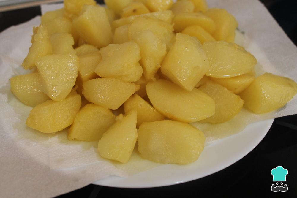 Cuando estén tiernas, retira las patatas en un plato con papel absorbente y reserva.