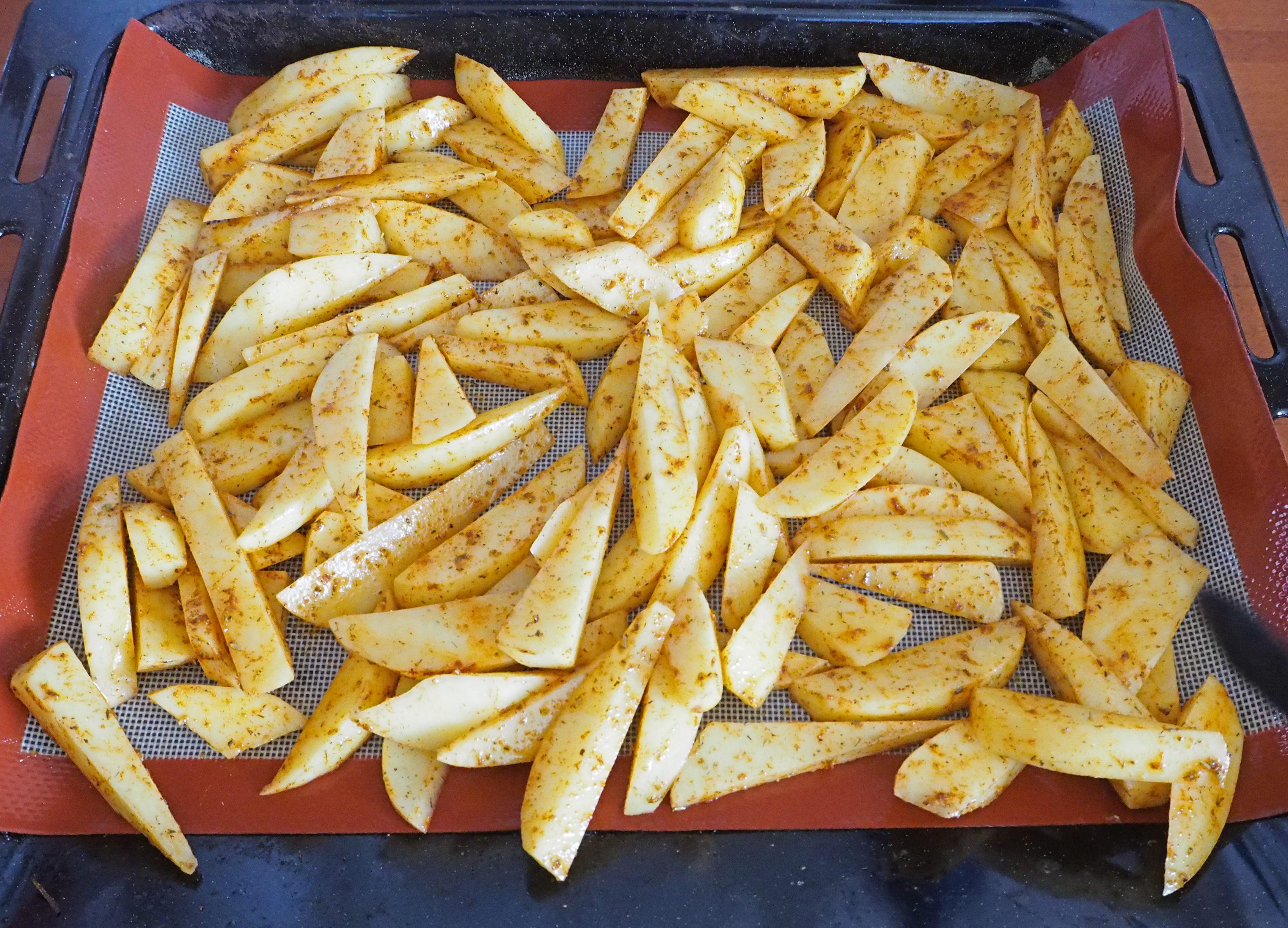 Hay dos maneras de hacer la receta de patatas deluxe especiadas. Condimentarlas y meterlas directamente al horno, como hice yo esta vez, o meter primero las patatas al microondas unos 4 minutos. Después, las condimentamos y al horno. De esta forma el tiempo de horneado disminuirá considerablemente, quedando tan ricas como de la primera manera.