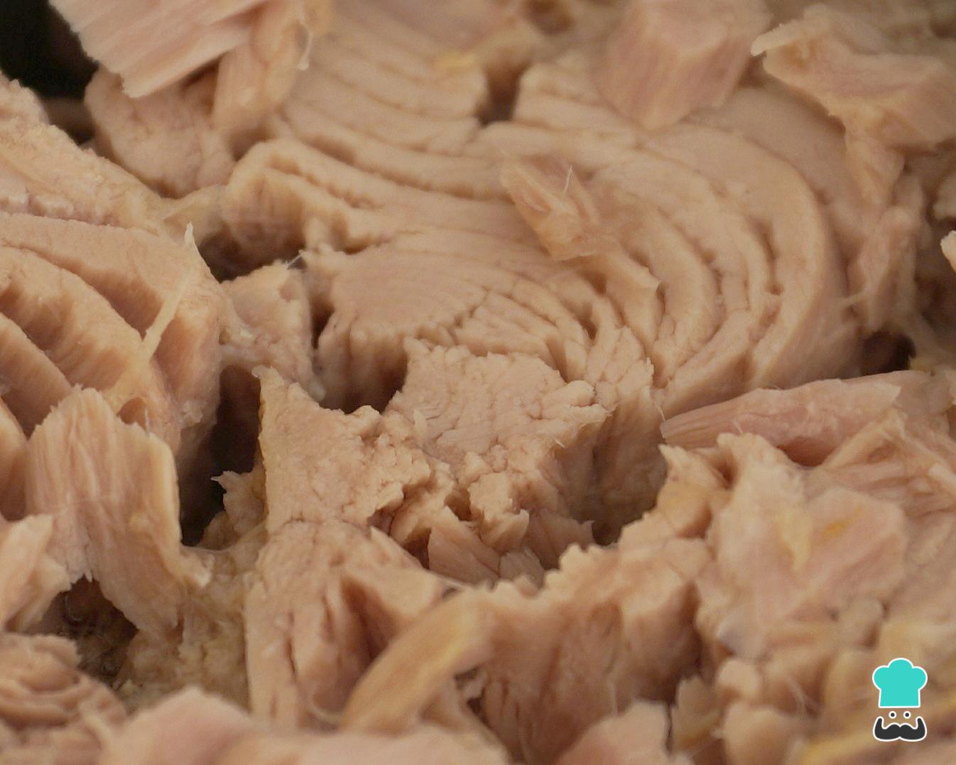 Escurre el agua de la lata de atún, desmenúzalo y colócalo en el vaso de la licuadora o en un recipiente para batir con batidora eléctrica. Para obtener un paté de atún casero light (o más ligero) es muy importante no utilizar atún en aceite.