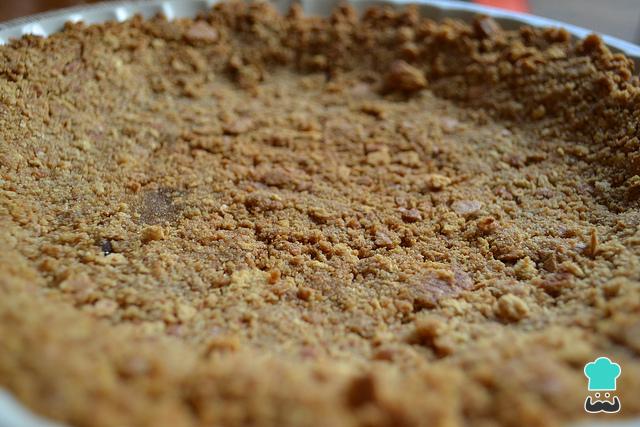 Para la tartaleta del pay de plátano y cajeta: Mezclar las galletas molidas con la mantequilla y 2 cucharadas de agua hasta formar una masa maleable. Haz una base con la masa en un molde para hornear redondo. Lleva a cocción de 15 a 20 minutos aproximadamente a 180° o hasta que este firme la tartaleta.