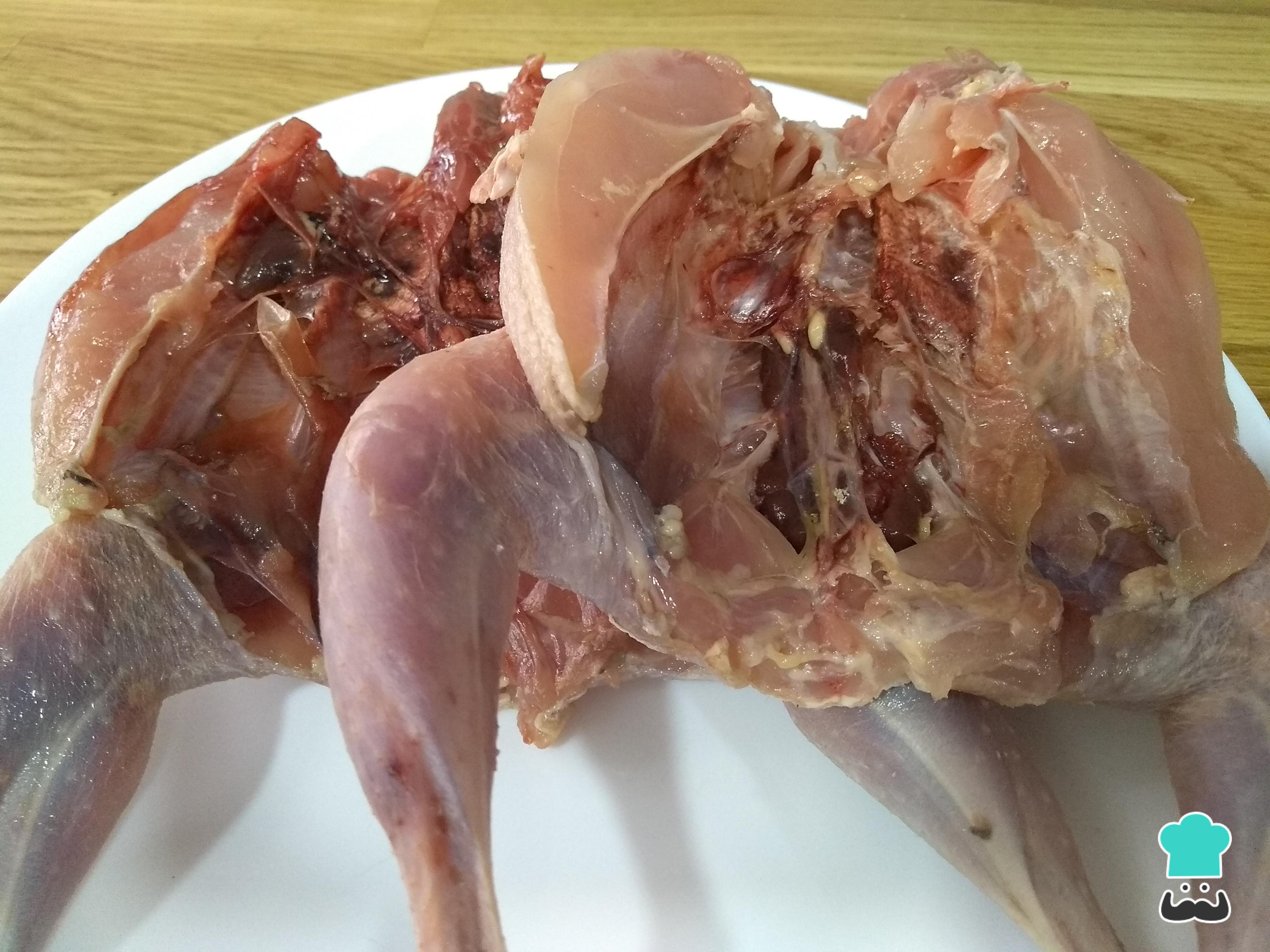 Prepara la perdiz limpiándola en su interior y quitándole completamente las plumas. Si fuese perdiz de caza, debes extraer la pluma y los posibles plomos que pueda contener incrustados.