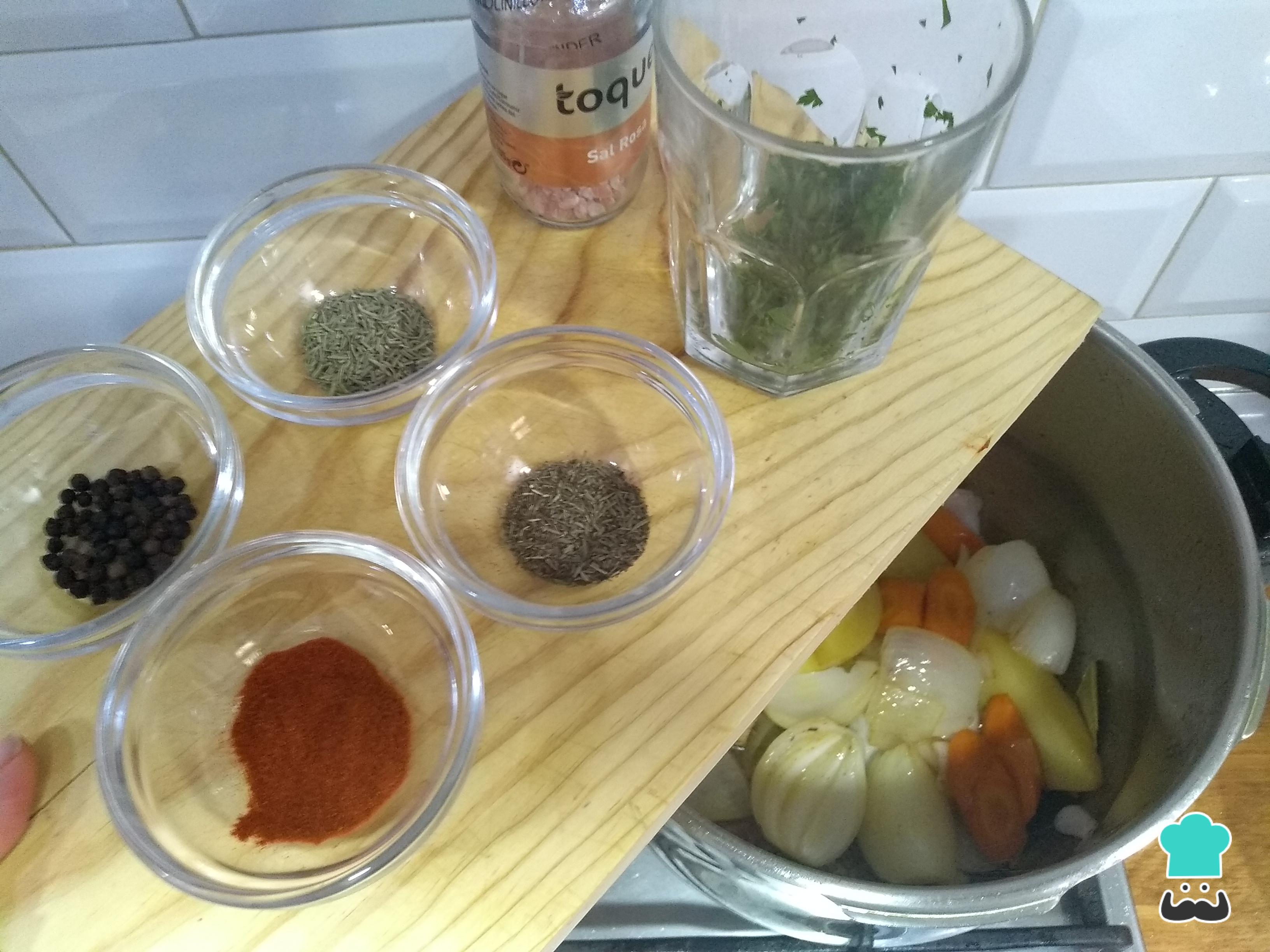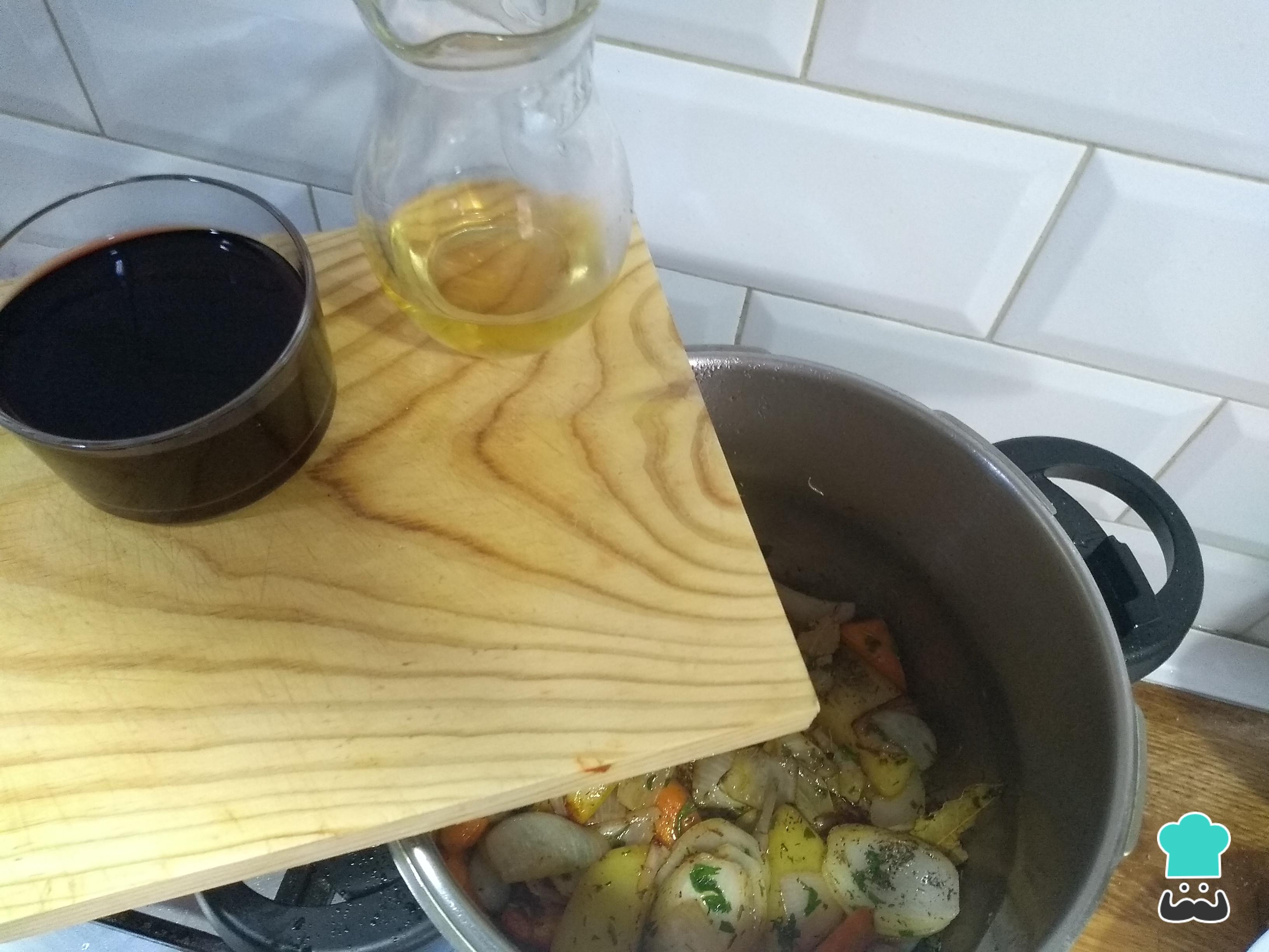Truco: Puedes prescindir del vino, pero lo usamos para darle un sabor más suculento al escabeche.