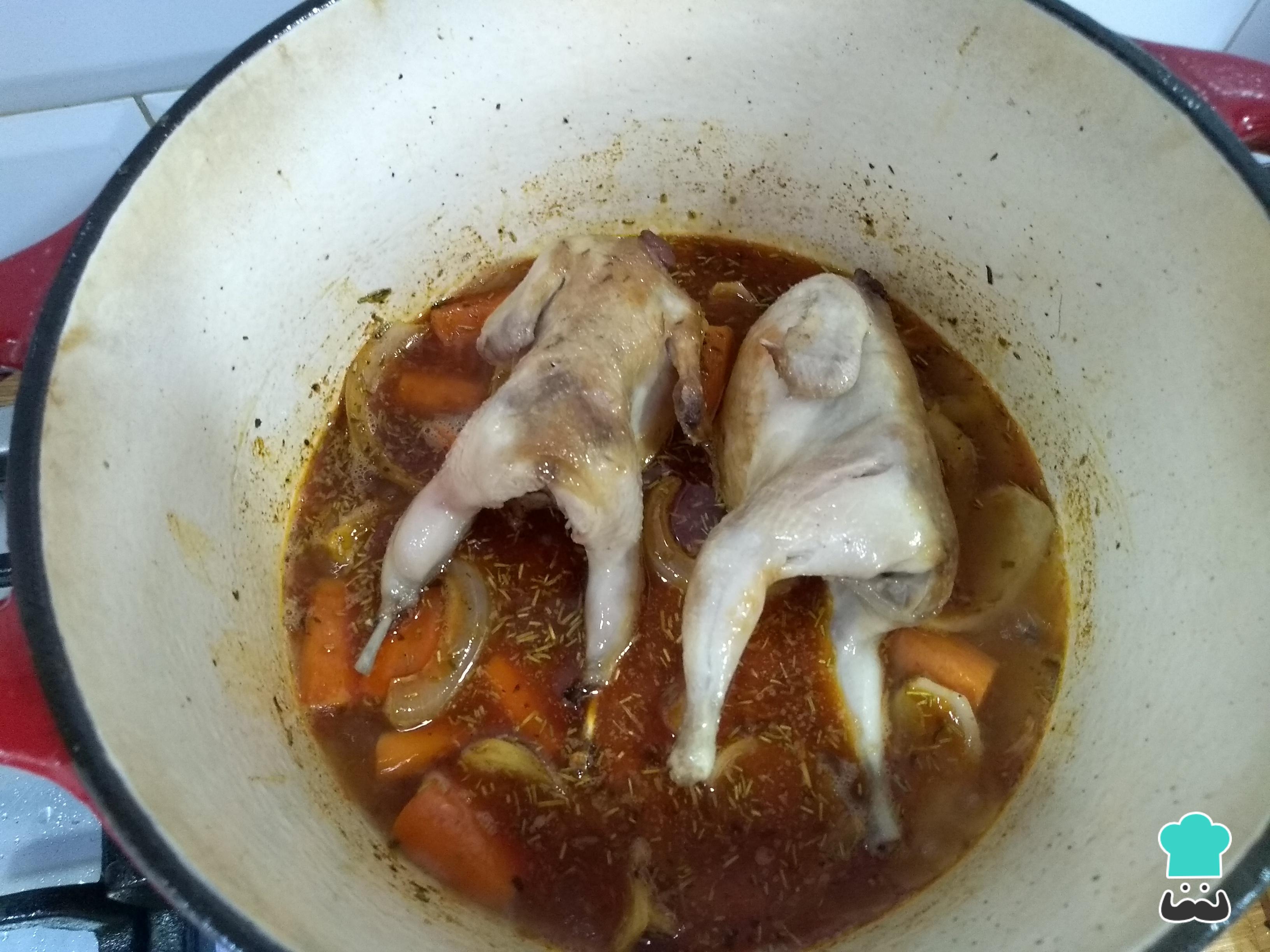 Transcurrido este tiempo, destapa la cacerola y dale un punto de sal. Hecho esto, añade las perdices y vuelve a tapar para cocinarlas a fuego muy bajo. Deberás dejar que las perdices a la toledana se cocinen durante 30 minutos si utilizas la cacerola básica, así quedarán tiernas. Ahora bien, si usas una olla a presión, el tiempo de cocción será de 15 minutos nada más.