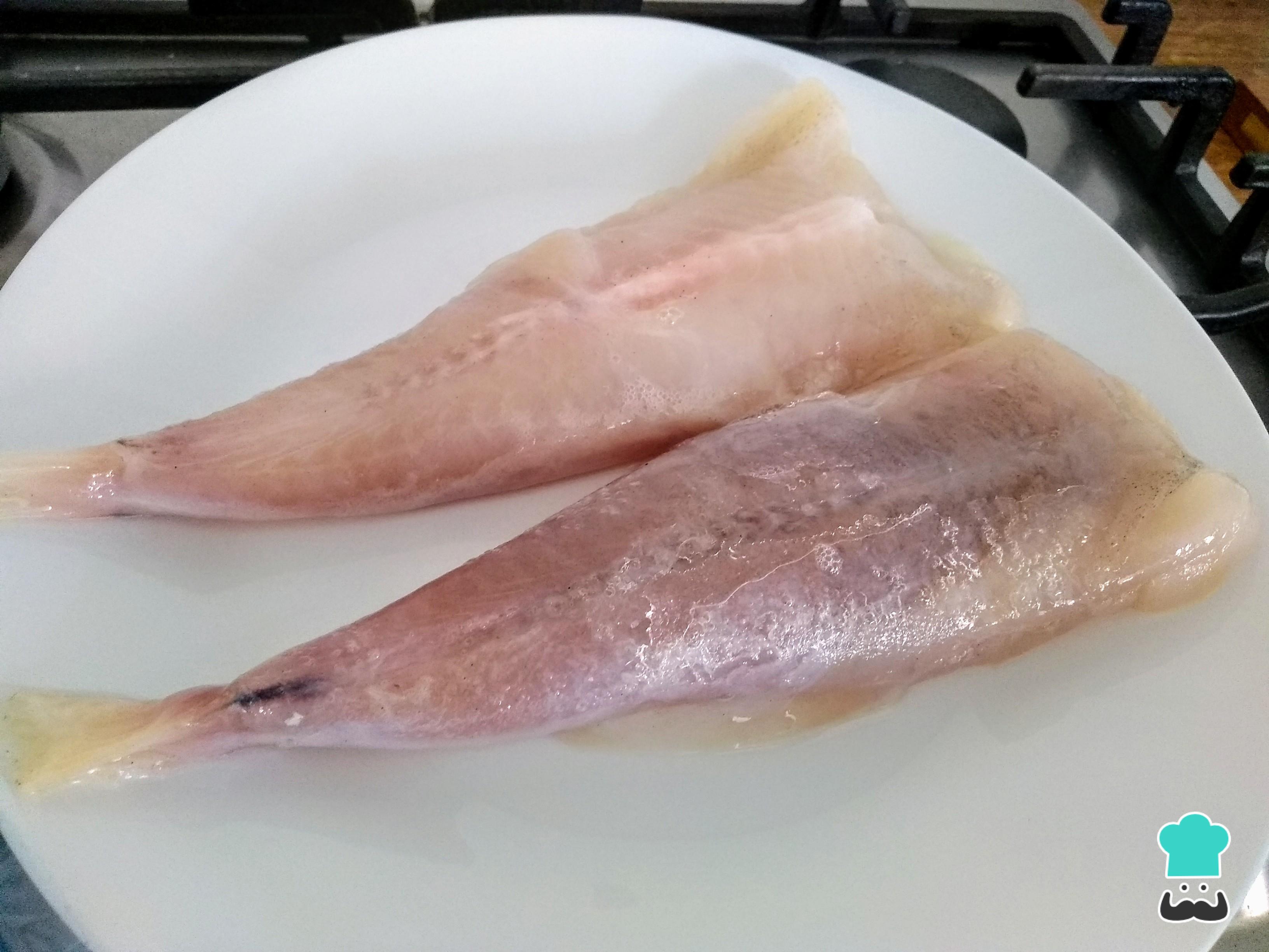 Prepara dos colas de rape sin piel. Mientras tanto, para acelerar el tiempo de preparación, pon a calentar en una sartén honda aceite para freír. De este modo, el aceite ya estará a la temperatura adecuada cuando toque utilizarlo. Así, la fritura no falla jamás.