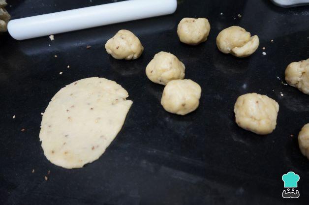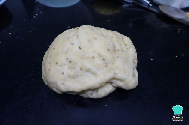 Añade un poco de aceite en las manos y forma bolas de masa. Para dar la forma al pestiño, coge un rodillo y estira la masa.