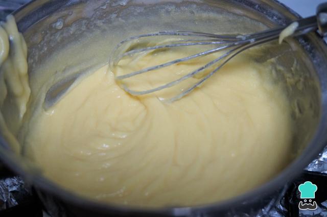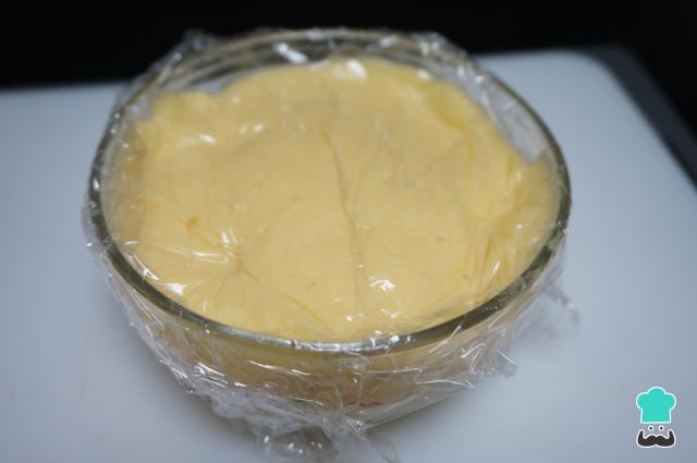 Cuando la crema esté fría, añádela en un bol, tápala con papel film e introduce en la nevera. Reserva.