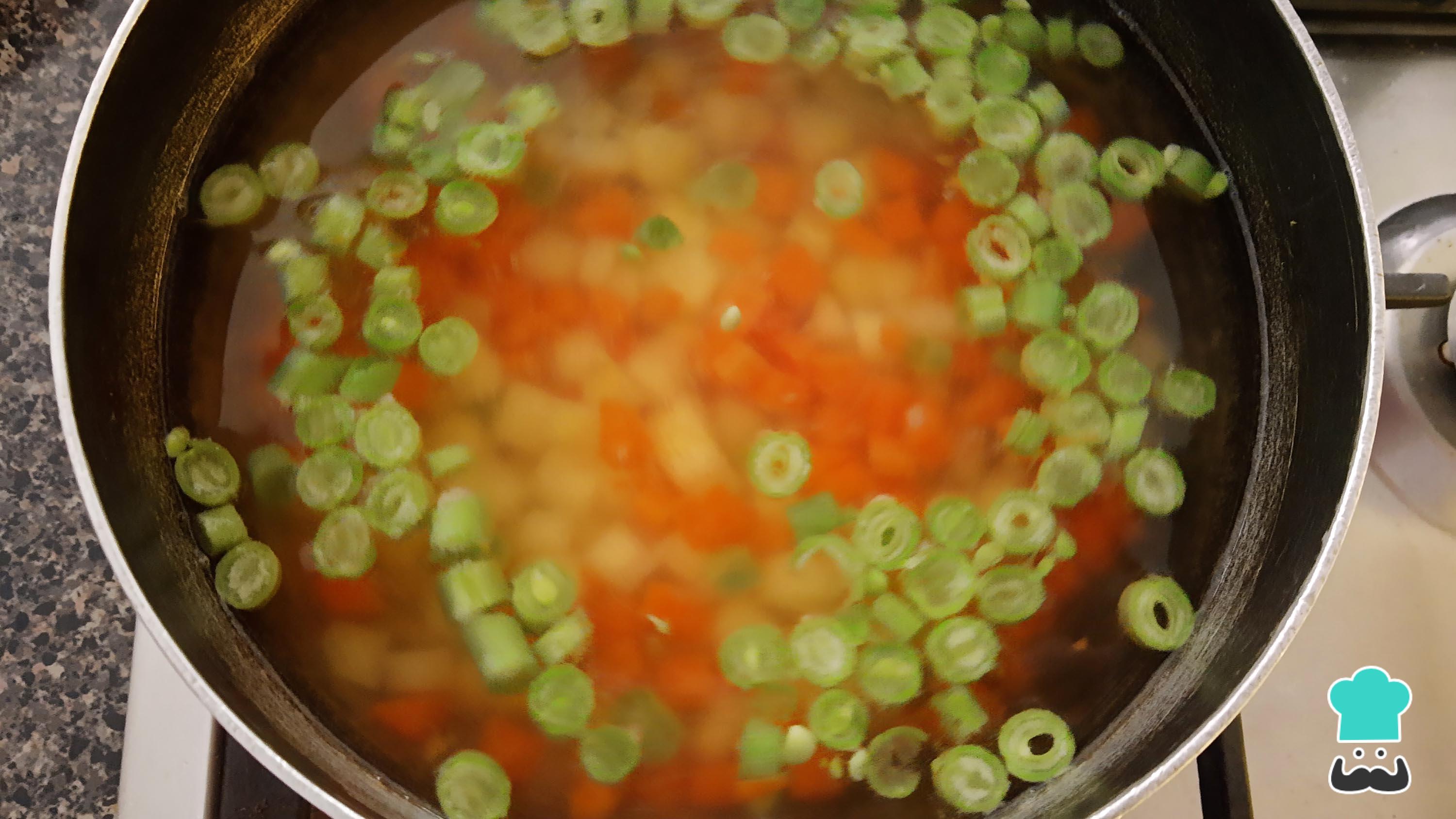 Calienta suficiente agua y, cuando comience a hervir, agrega las verduras picadas con un poco de sal y deja que se cocinen de 8 a 10 minutos o hasta que estén blandas. Escúrrelas y resérvalas.