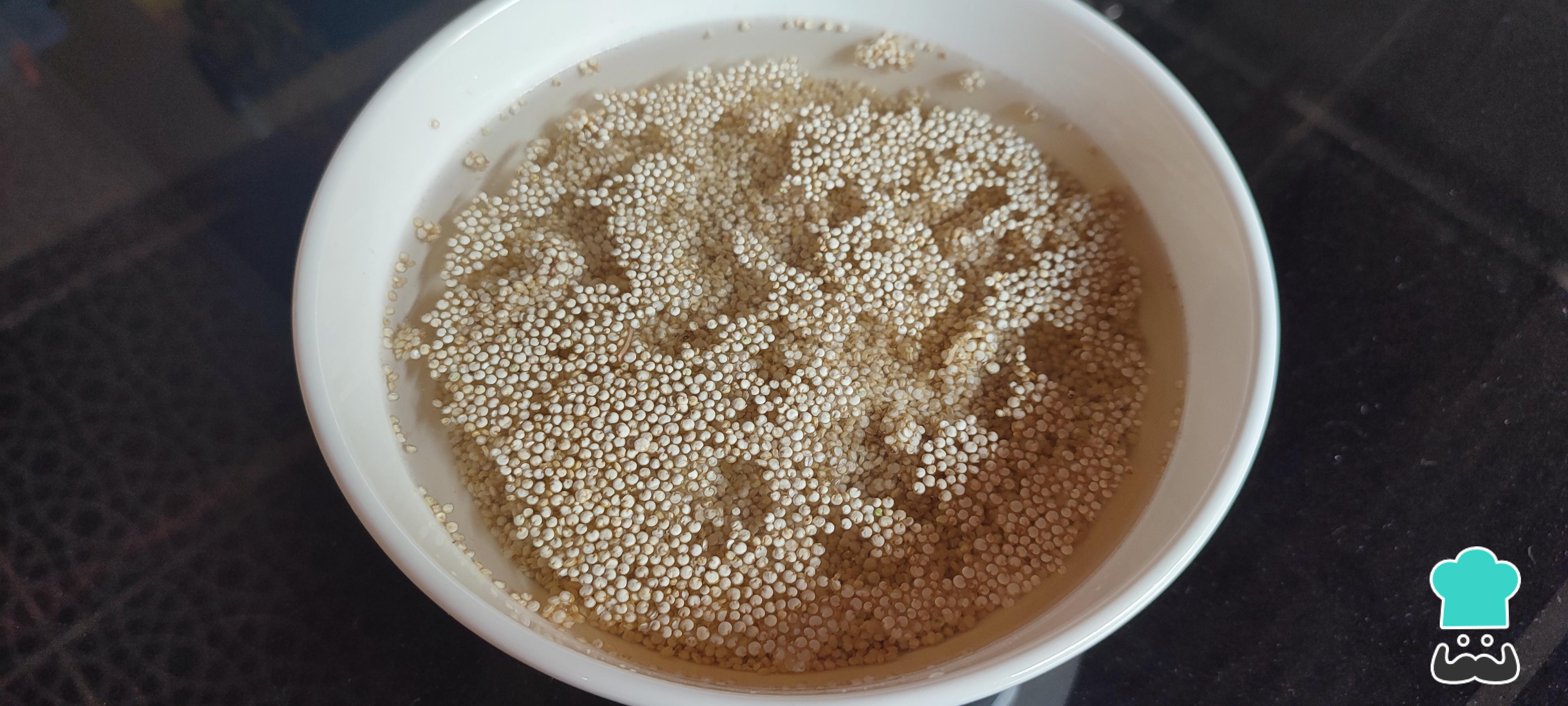 Para empezar con la receta de picante de quinua fácil, primero debes dejar en remojo la quinua un par de horas y, luego, lavarla hasta que deje de salir una especie de espuma.