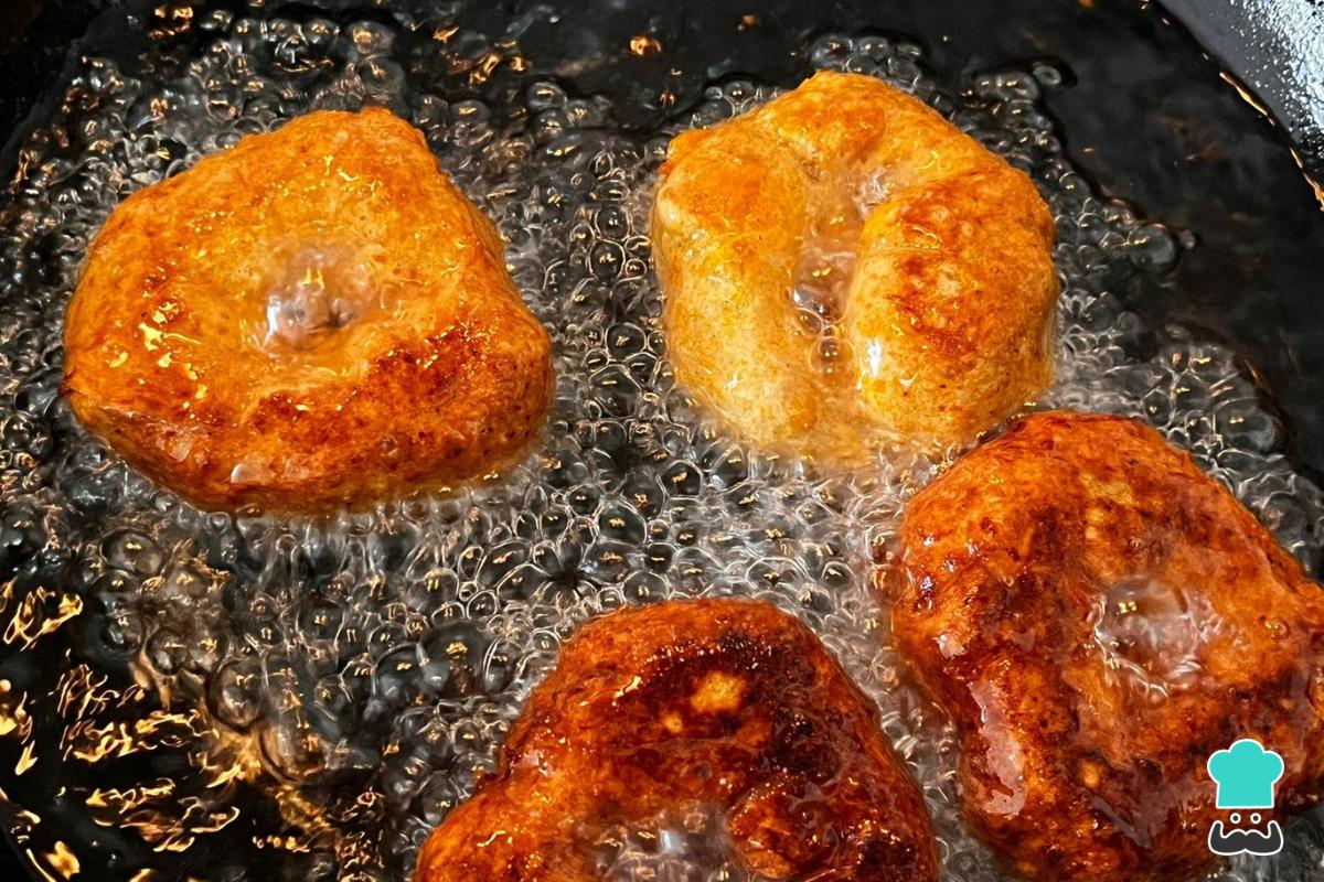 - El secreto para que no se pegue la masa a tus manos es mojarlas con agua antes de formar los aros.