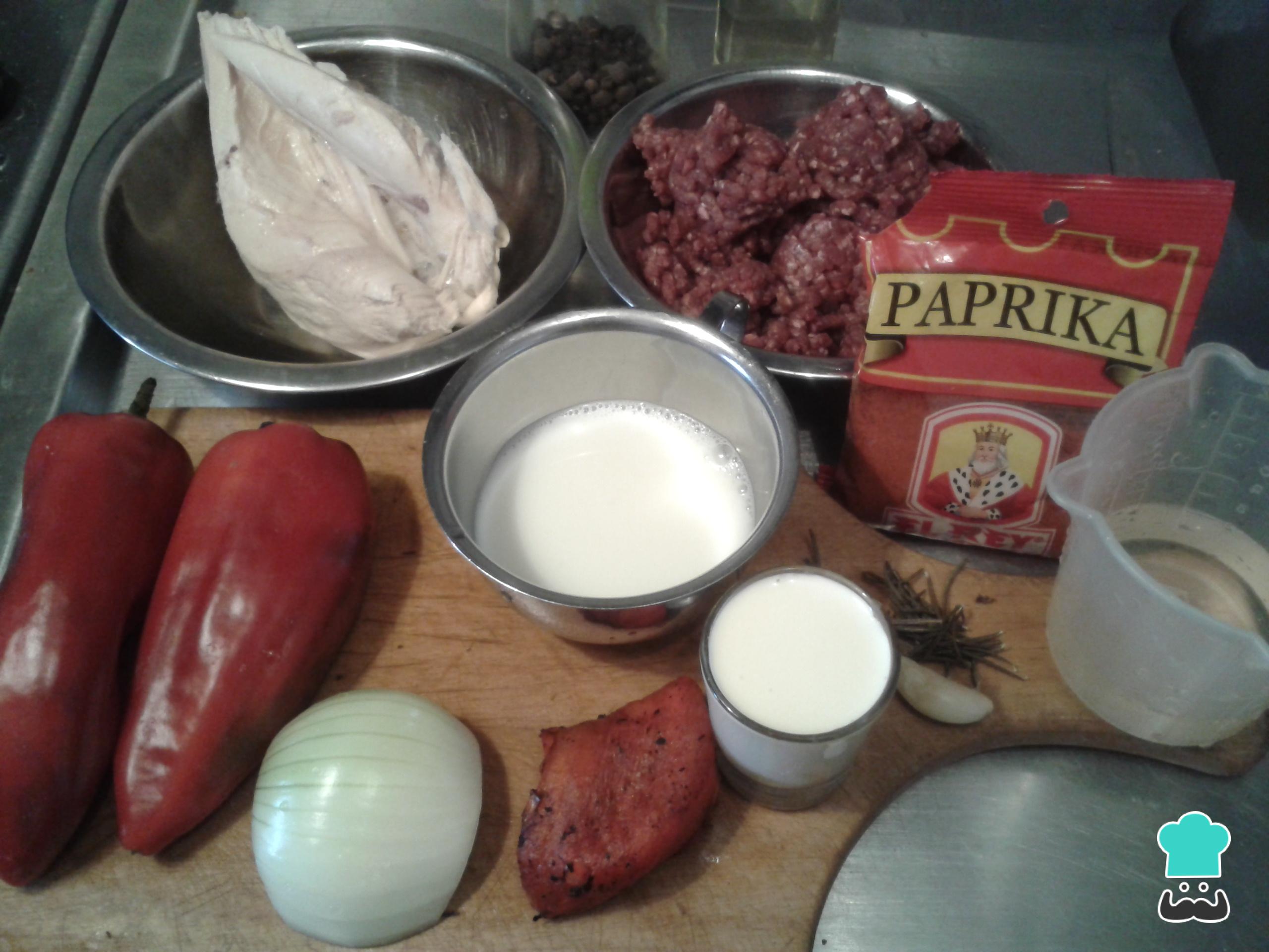 Alista todos los ingredientes en la mesa de trabajo para que hacer que la receta pimientos del piquillo rellenos de carne picada sea mucho más sencilla. El pimiento del piquillo asado lo puedes comprar ya listo o hacerlo tú mismo al horno o al microondas.