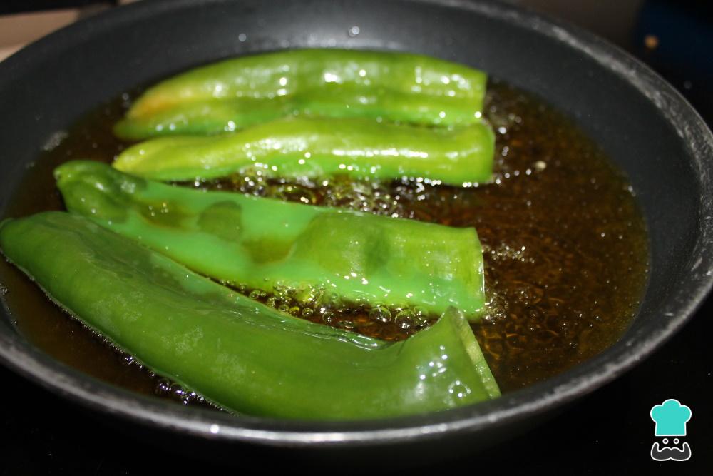 Pon el aceite de oliva en una olla o sartén amplia y caliéntalo a fuego fuerte. Cuando esté caliente, coloca los pimientos y baja el fuego, pues es mejor freír los pimientos a fuego un poco lento. Dales la vuelta cuando veas que por una cara ya está arrugada la piel y blanda. Si haces pimientos fritos verdes, debes saber que el tiempo de cocción suele rondar los 30 minutos, dependiendo del tamaño.