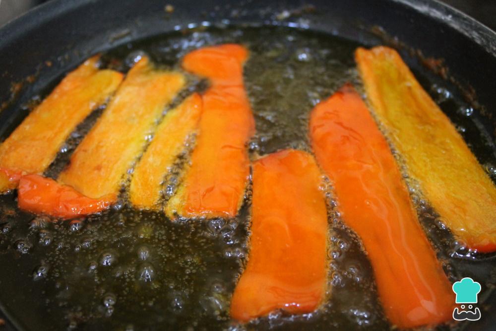 Si estás haciendo pimientos fritos rojos, igualmente recomendamos cocinarlos a fuego suave. Los pimientos troceados se suelen hacer antes y en 20 minutos estarán listos.