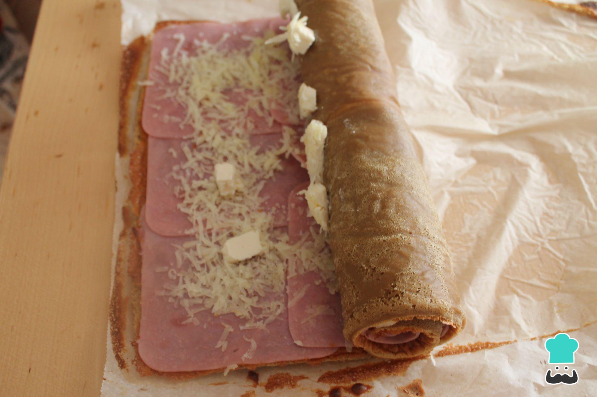 Truco: puedes utilizar queso en lonchas, quesos fuertes, roquefort o tus quesos preferidos. Señalamos que el pionono de roquefort y jamón está exquisito.
