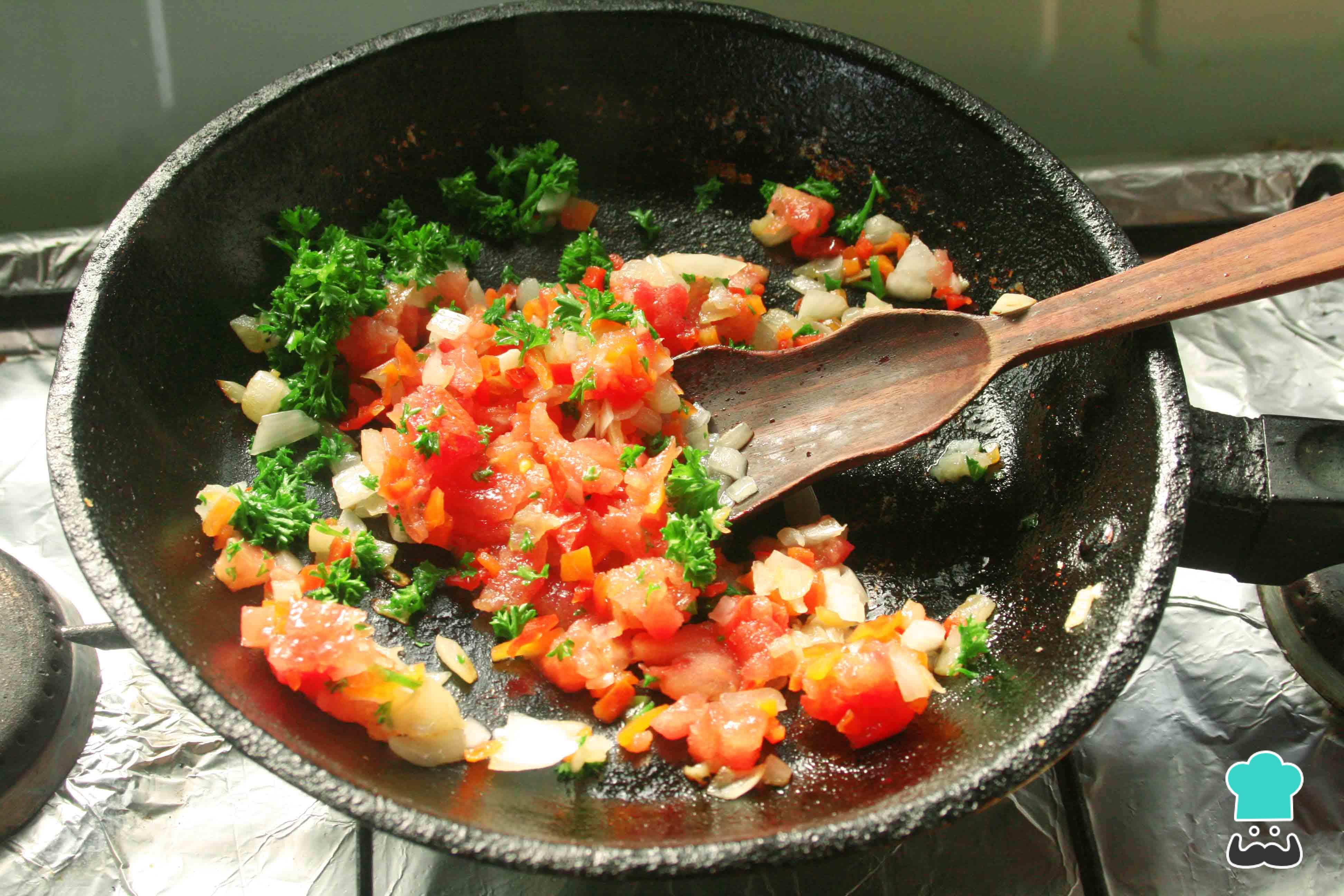 Agrega los ajíes cortados en cuadros y el perejil finamente picado.