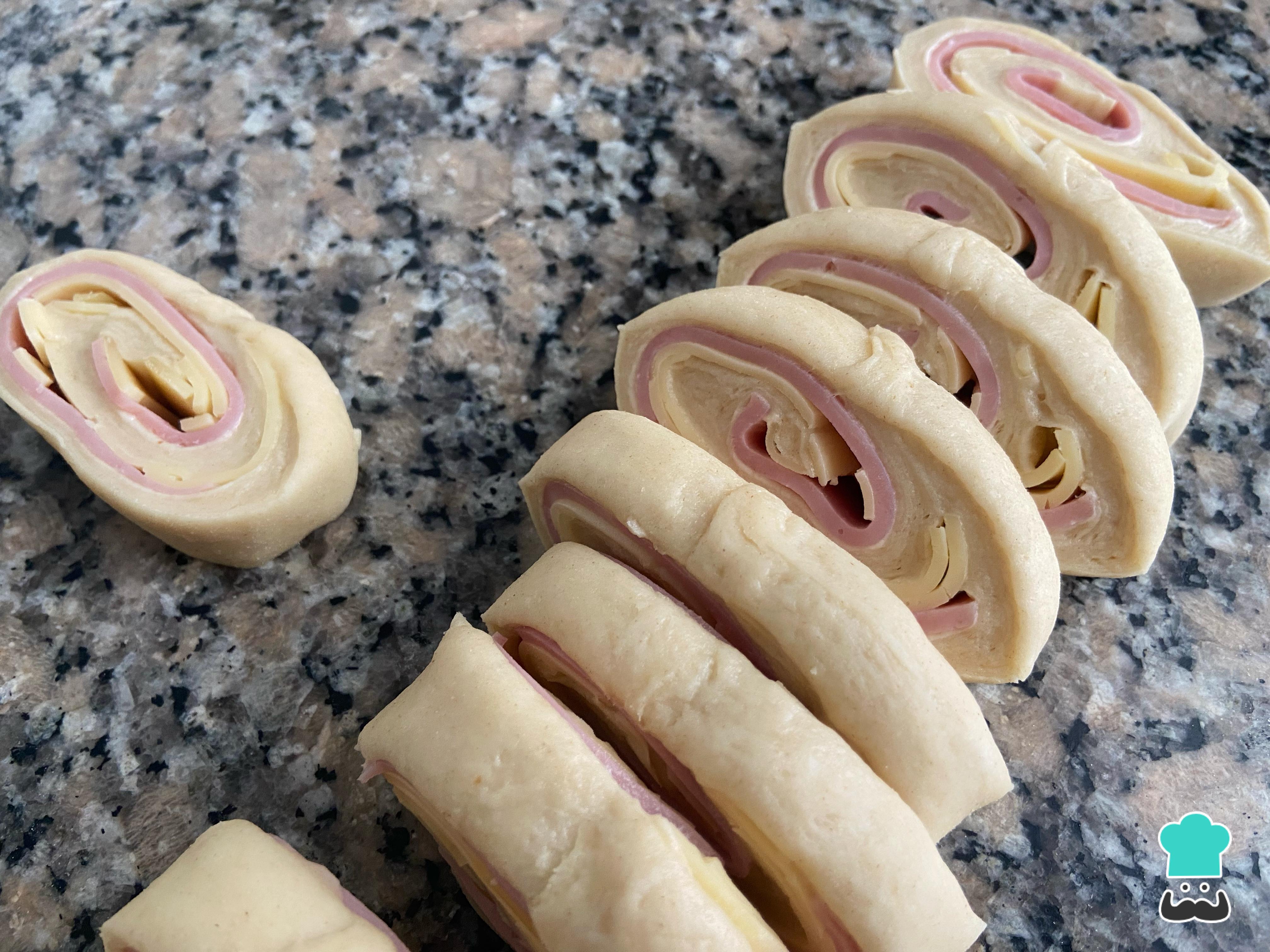 Una vez frío, corta tus rollitos aproximadamente 1 dedo de ancho y enciende el horno a 200 ºC para que se precaliente.