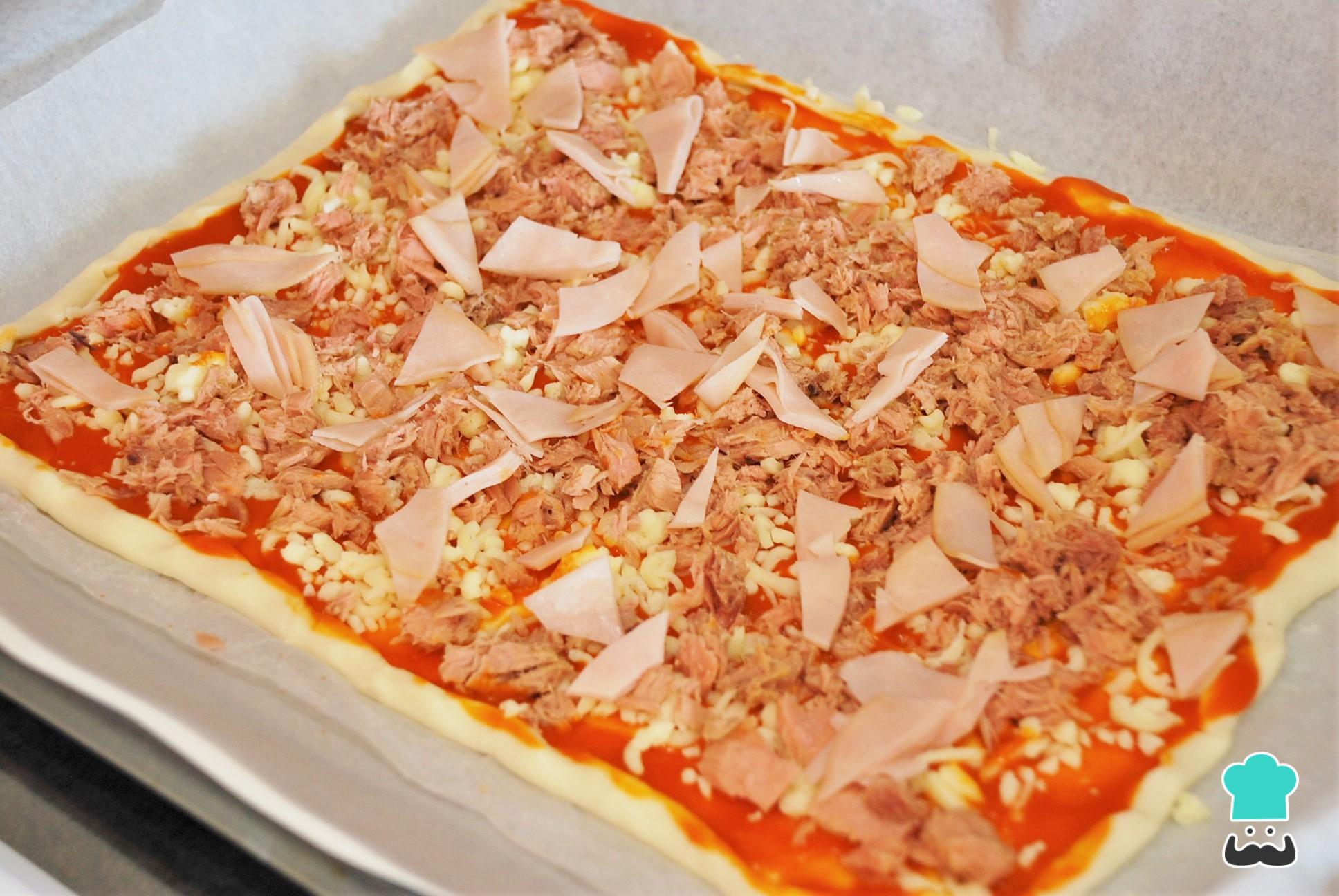 Cómo hacer Pizza de atún y jamon york: