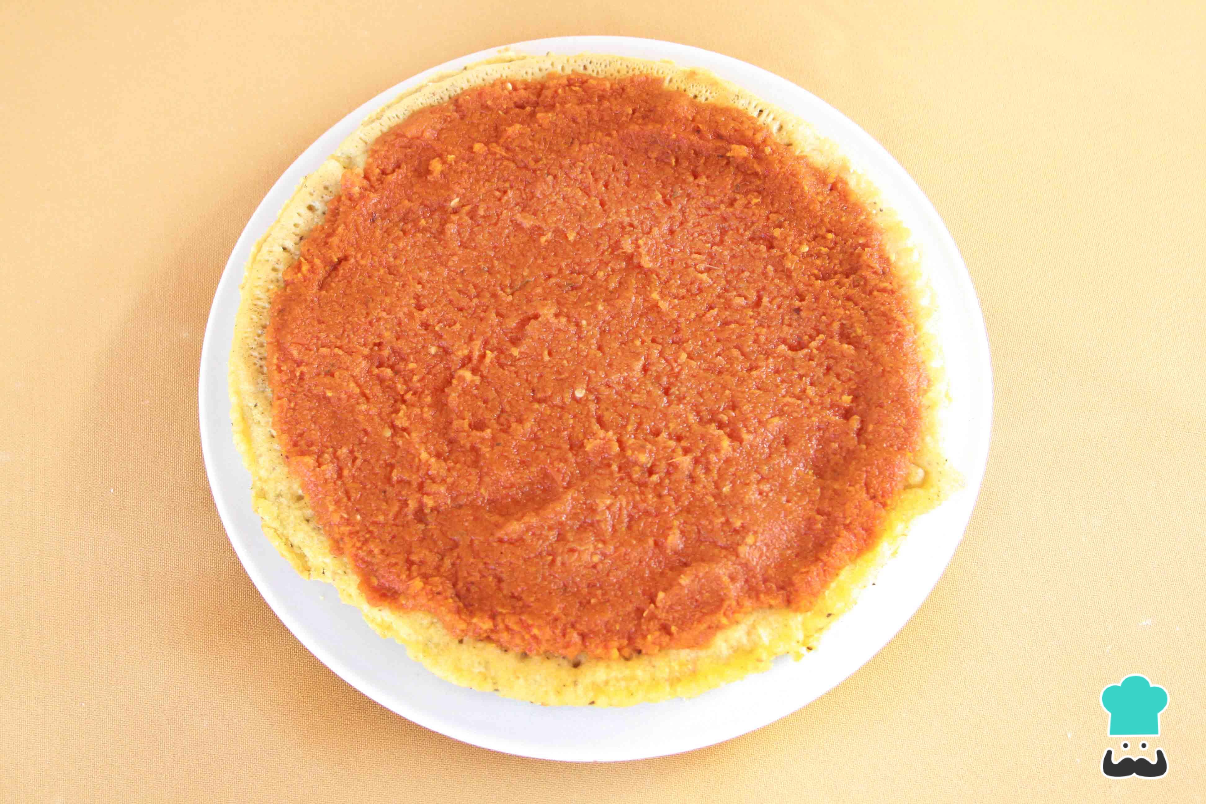 Agrega la salsa y expande de forma uniforme sobre la superficie.
