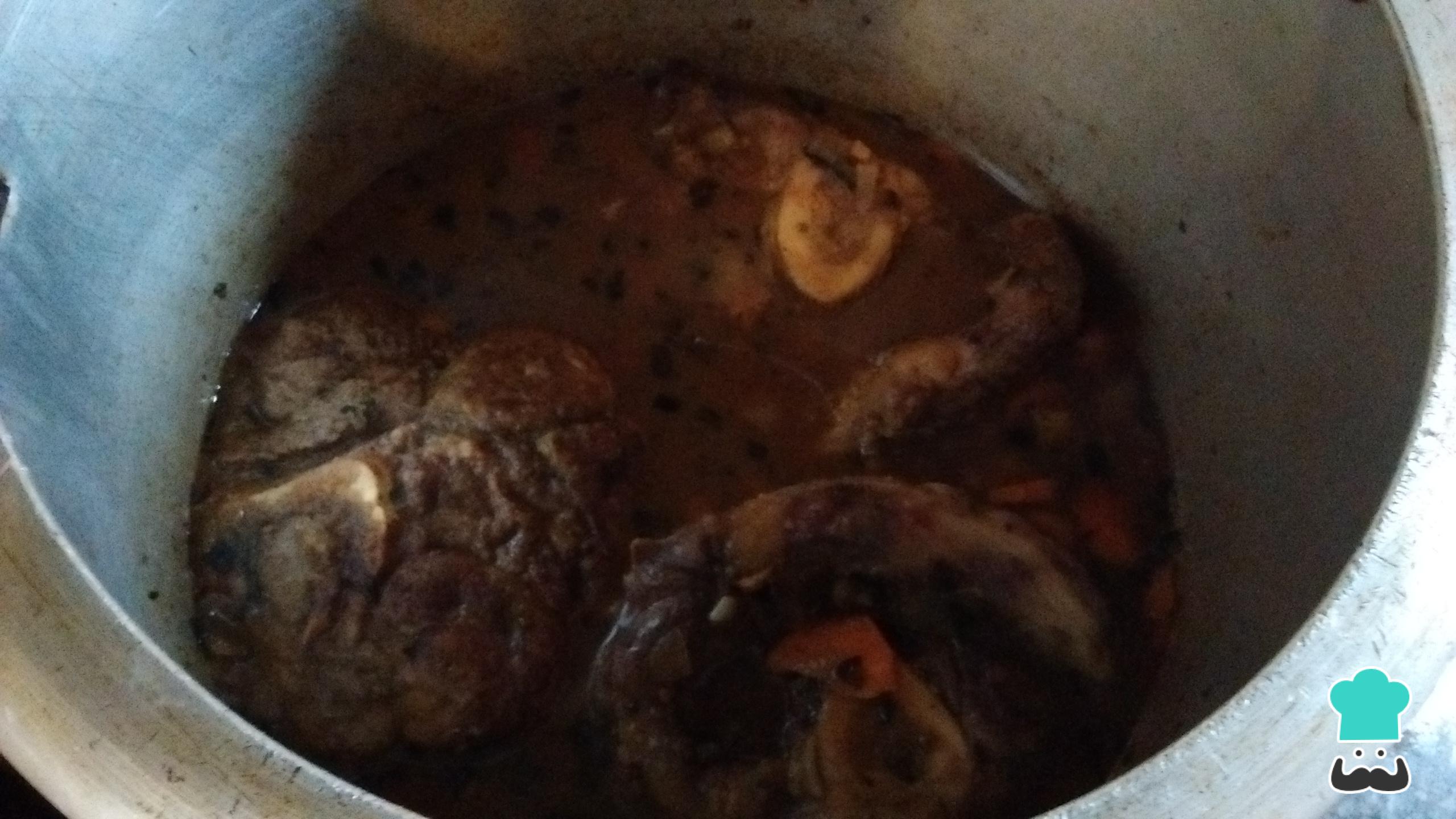 Truco: si cocinas tu osobuco con polenta en una olla común, puedes cocinarlo por dos horas. Deberás asegurarte que no se quede sin líquido y puedes agregar un difusor debajo para evitar que se pegue.