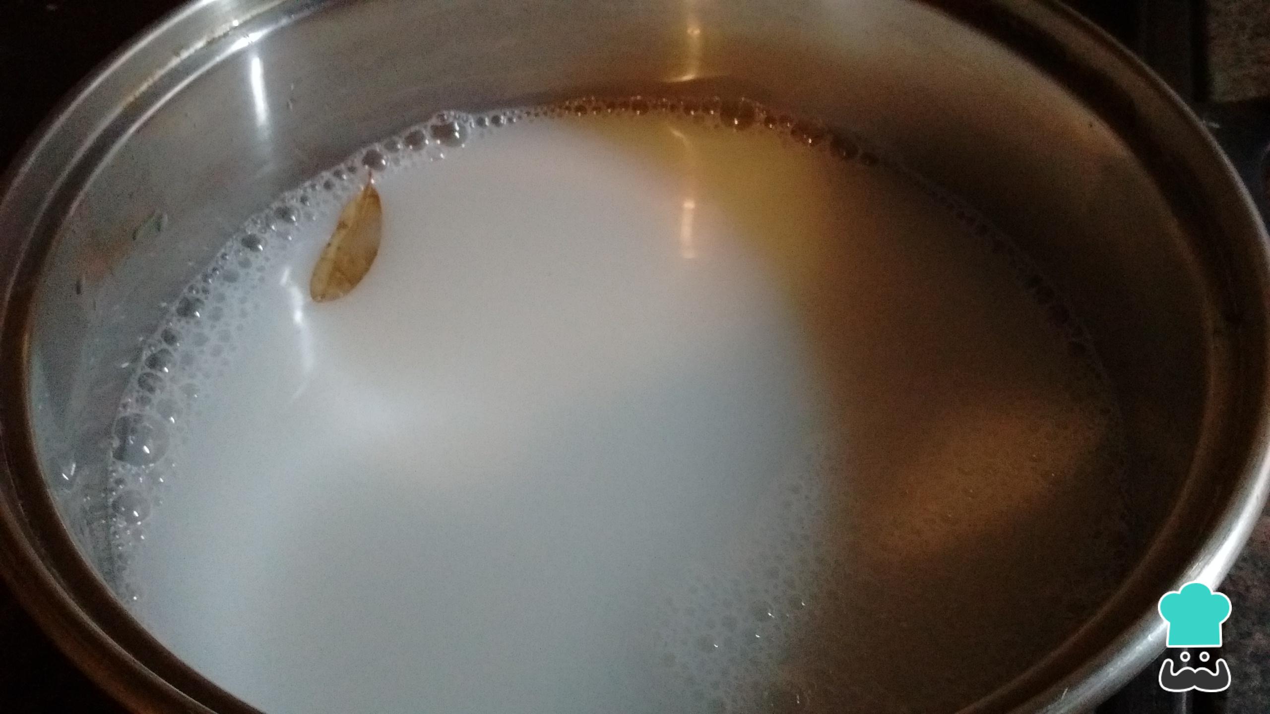 Cuando tu osobuco esté casi listo, cocina la polenta. Para hacerla, deberás hervir 4 partes de líquido por parte de polenta. En este caso, utilizamos 1 taza de leche con 3 tazas de agua, pero puedes agregar más o menos leche de acuerdo a tu gusto. También puedes reemplazar el agua por caldo, aunque recomendamos este sea casero. Condimenta con 1 hoja de laurel.