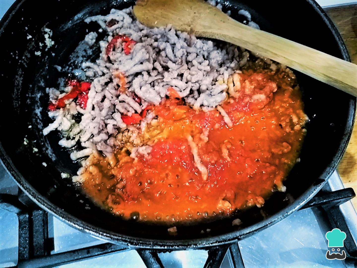 Truco: Si prefieres que te quede más líquida, puedes añadir mas tomate triturado, pues esta receta se caracteriza por la consistencia líquida de su salsa.
