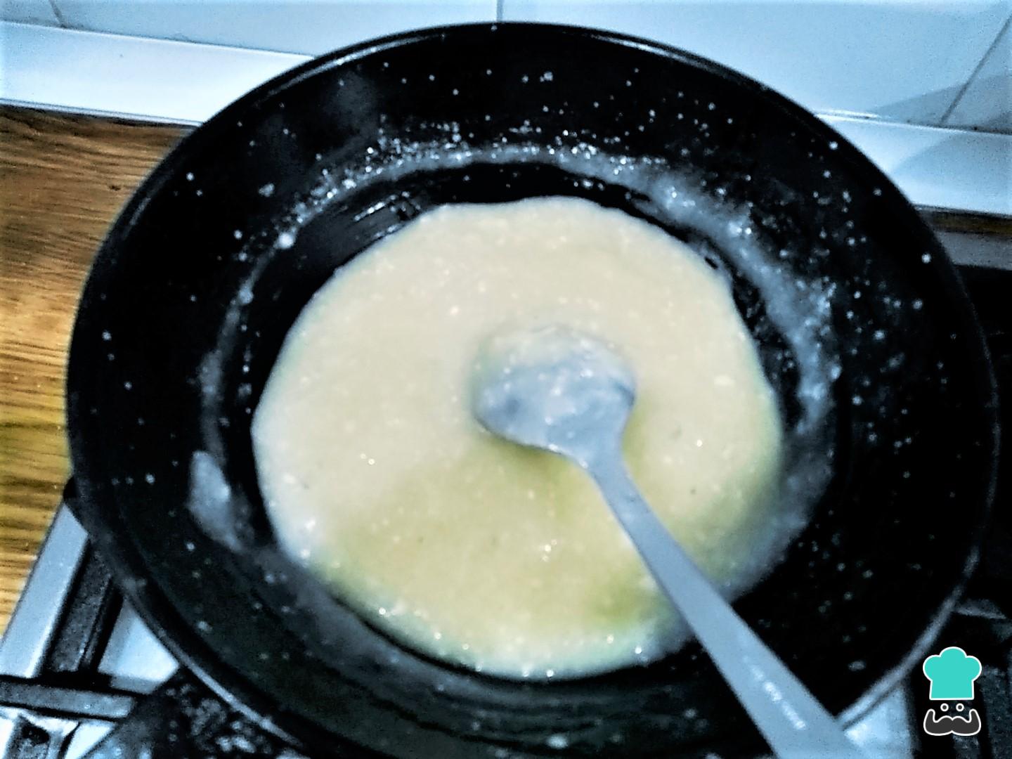 Truco: Si se forman grumos, puedes pasar una batidora de mano para afinar la polenta.