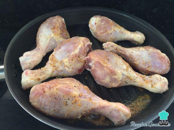 Se sazona el pollo con sal y pimienta y se pone a cocer en una sartén.