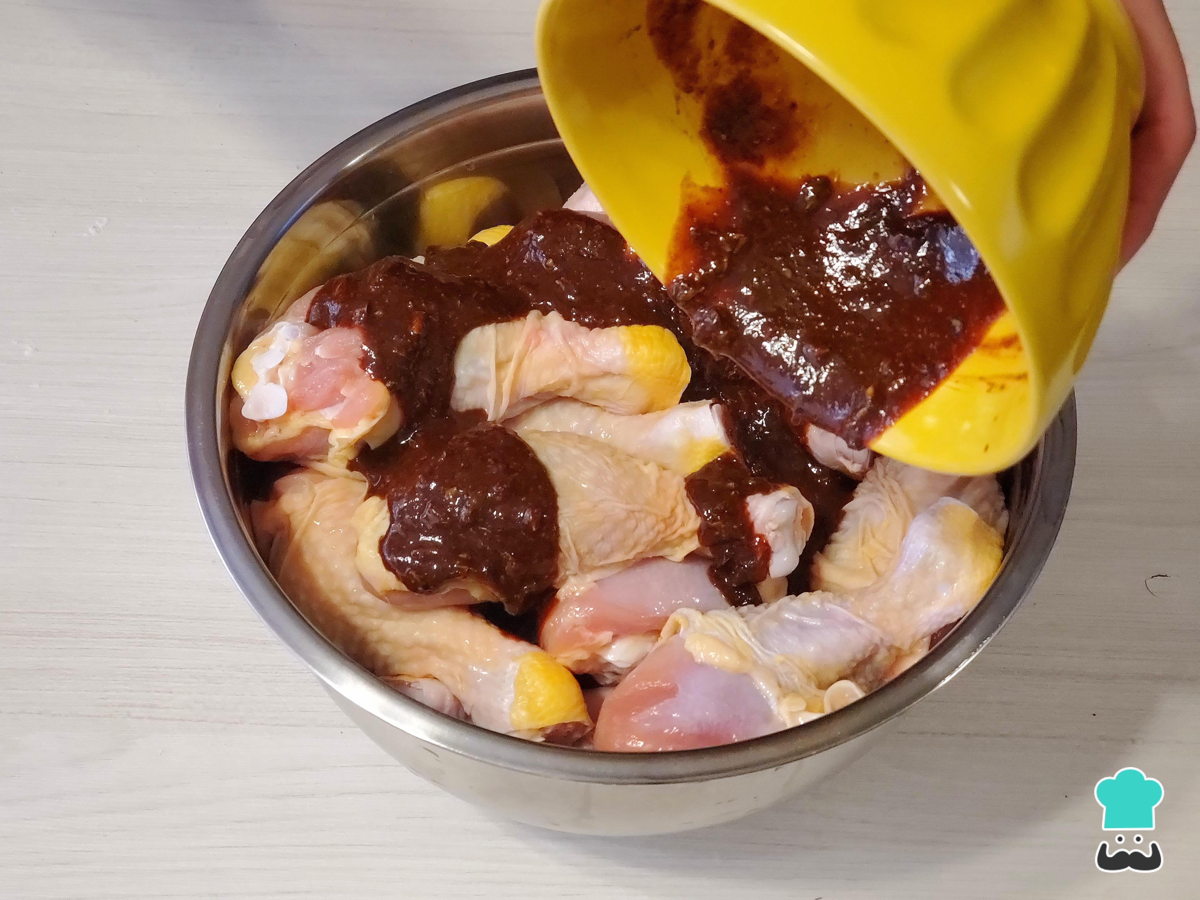 Mezcla bien y vuélcalo en el bowl donde se encuentran todas las piezas de pollo. Distribuye muy bien masajeando con las manos y deja que se maceren mínimo 30 minutos.