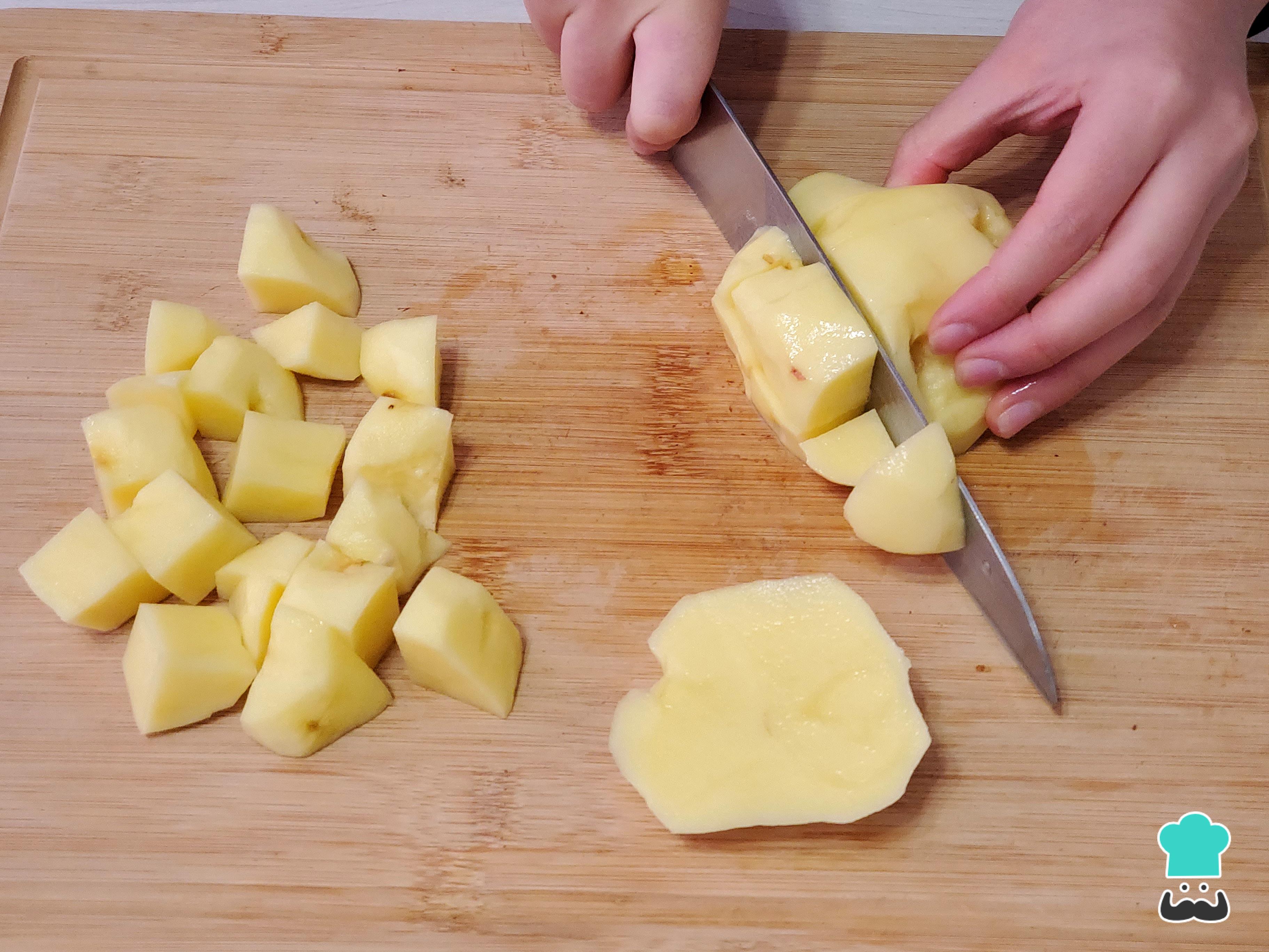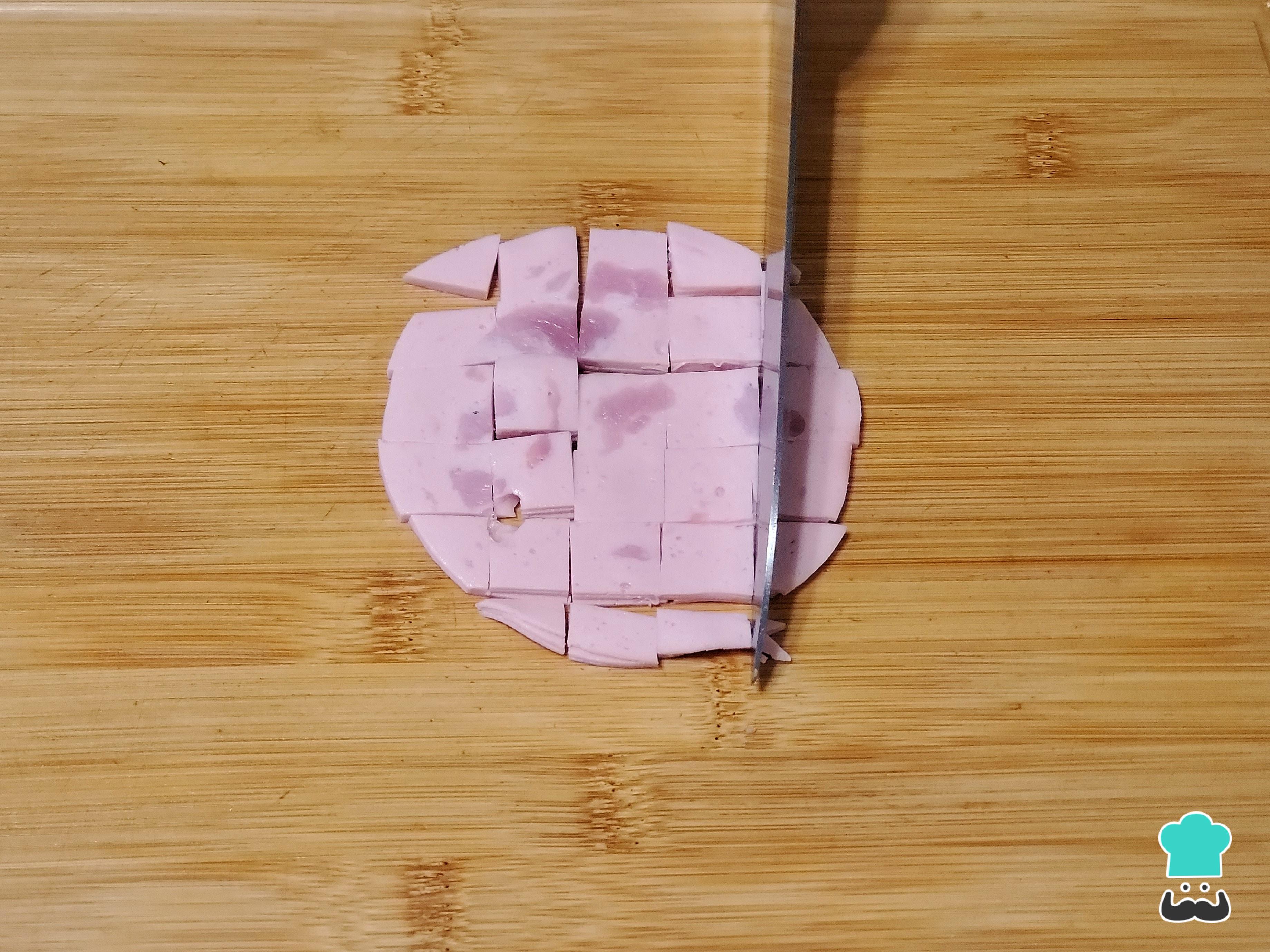 Pica el jamón en cubos del mismo tamaño de la papa.