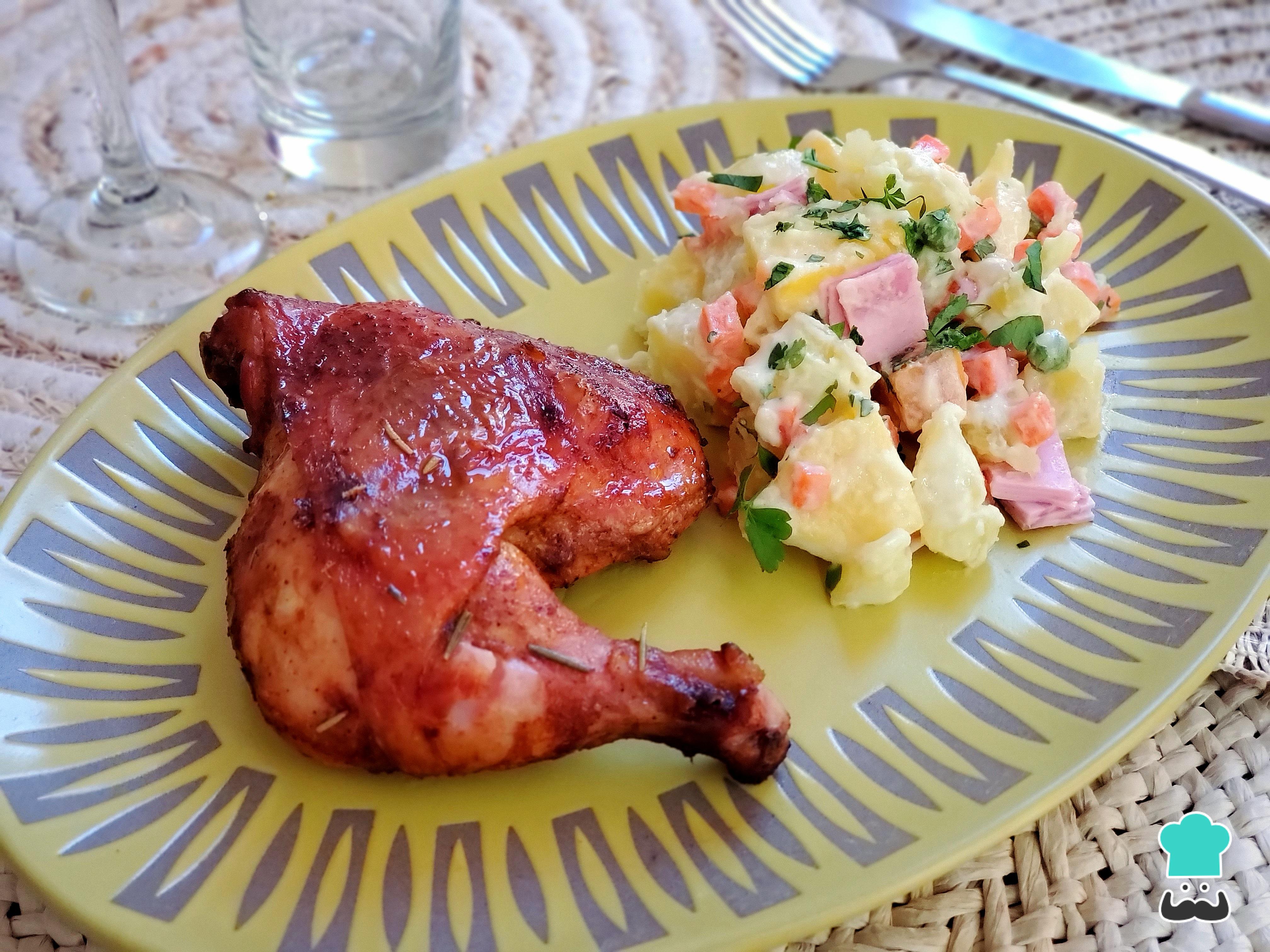Cómo hacer Pollo al horno con ensalada blanca: