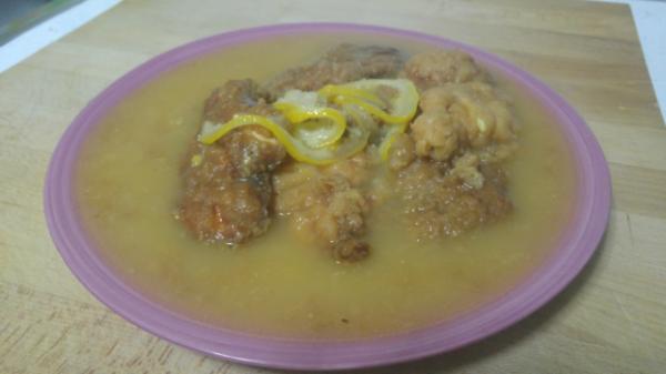Por último, introduce los filetes de pollo rebozados en la olla con la salsa y cocínalo todo junto unos minutos más para que se integren los sabores. ¡Y listo! Ya puedes degustar tu pollo al limón chino rebozado cuando quieras.